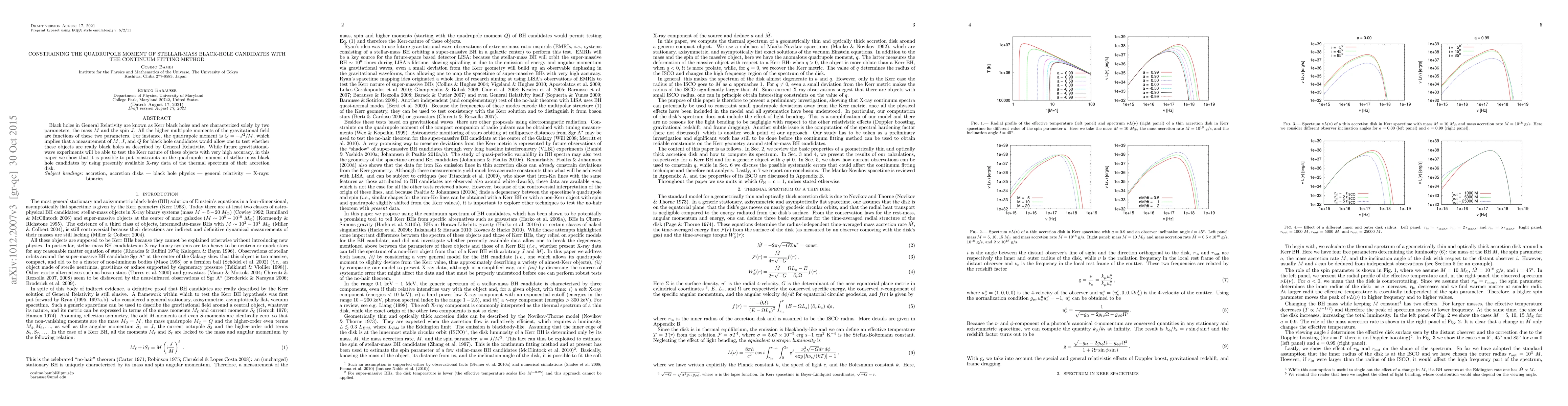 This paper explores constraining the quadrupole moment of stellar-mass black hole candidates using the continuum fitting method and available X-ray data from their accretion disks. It demonstrates that current X-ray observations can provide constraints on the quadrupole moment, aiding in testing the Kerr black hole nature described by General Relativity.