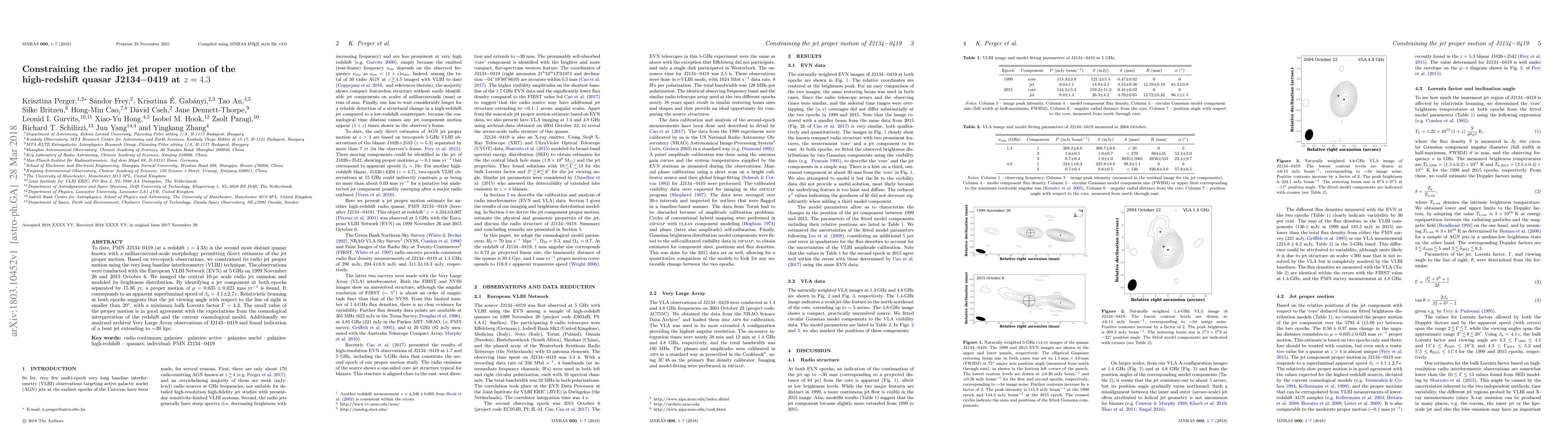This study uses VLBI observations to constrain the proper motion of the radio jet in the high-redshift quasar PMN J2134-0419 at z=4.33, finding a proper motion of mu=0.035 +- 0.023 mas/yr and an apparent superluminal speed of beta_a=4.1 +- 2.7 c, consistent with relativistic beaming and cosmological models.