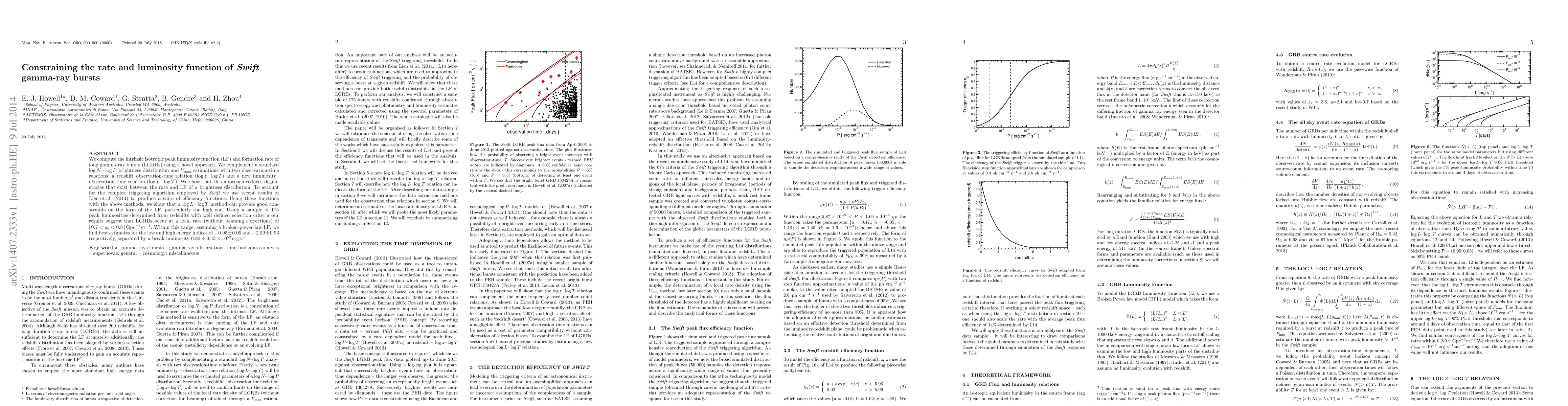 We compute the intrinsic isotropic peak luminosity function (LF) and formation rate of long gamma-ray bursts (LGRBs) using a novel approach. We complement a standard log\,$N$\,--\,log\,$P$ brightness distribution and $V_{\mathrm{max}}$ estimations with two observation-time relations: a redshift--observation-time relation (log\,$z$\,--\,log\,$T$) and a new luminosity--observation-time relation (log\,$L$\,--\,log\,$T$). We show that this approach reduces degeneracies that exist between the rate and LF of a brightness distribution. To account for the complex triggering algorithm employed by \emph{Swift} we use recent results of \citet{Lien_2014ApJ} to produce a suite of efficiency functions. Using these functions with the above methods, we show that a log\,$L$\,--\,log\,$T$ method can provide good constraints on the form of the LF, particularly the high end. Using a sample of 175 peak luminosities determined from redshifts with well defined selection criteria our results suggest that LGRBs occur at a local rate (without beaming corrections) of $[\,0.7 < \rho_{0} < 0.8\,]\,\mathrm{Gpc}^{-3}\mathrm{yr}^{-1}$. Within this range, assuming a broken-power-law LF, we find best estimates for the low and high energy indices of $-0.95 \pm 0.09$ and $-2.59 \pm0.93$ respectively, separated by a break luminosity $0.80 \pm0.43 \times 10^{52}$\,erg\,s$^{-1}$.