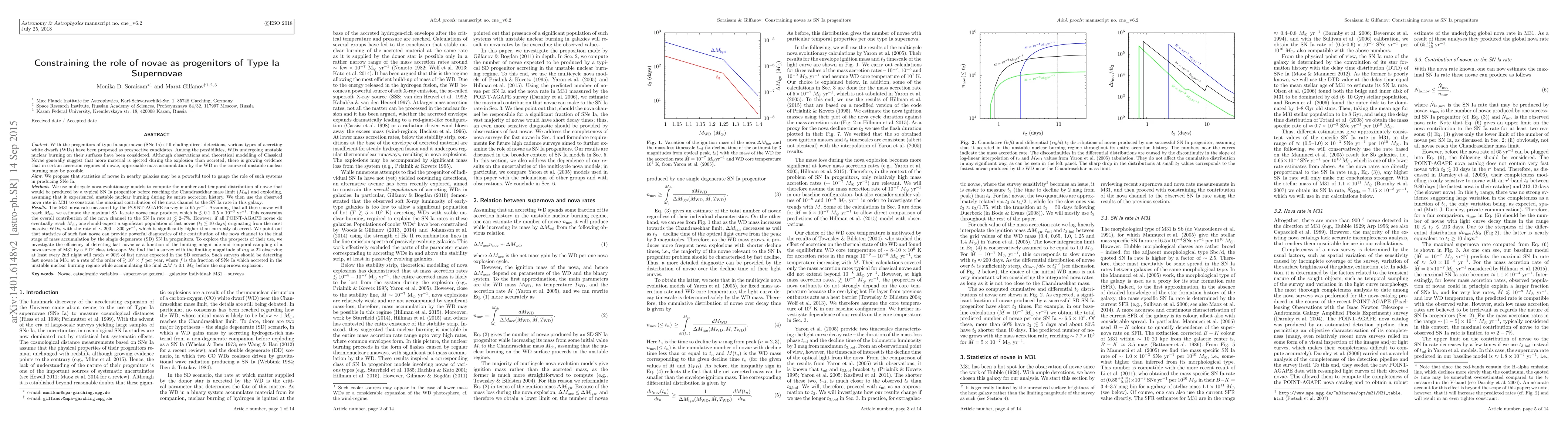 (Abridged) White dwarfs (WDs) undergoing unstable nuclear burning on their surfaces, resulting in the nova phenomenon, have been considered as one of the prospective candidates for the still elusive progenitors of SNeIa. We propose that statistics of novae in nearby galaxies may be a powerful tool to gauge the role of such systems in producing SNeIa. Using multicycle nova evolutionary models, we compute the number and temporal distribution of novae that would be produced by a typical (unstably burning) SNIa progenitor before reaching the Chandrasekhar mass limit (M_ch) and exploding. Combined with the observed nova rates, this can be used to constrain the maximal contribution of the nova channel to the SNIa rate in nearby galaxies. The M31 nova rate measured by the POINT-AGAPE survey is 65/yr. Assuming that all these novae will reach M_ch, we obtain the maximal SNIa rate novae may produce to be (1-5)x10^-4/yr. This constrains the overall contribution of the nova channel to the SNIa rate in M31 at <2-7%. Furthermore, ~80% of novae generated by a successful SNIa progenitor have short decay times (t2<10 days), and are produced when the WD mass is close to M_ch. We point out that statistics of such fast novae can provide a sensitive diagnostic of the contribution of the nova channel to the final stages of mass accumulation by the single degenerate (SD) SNIa progenitors. To explore the prospects of their use, we investigate the efficiency of detecting fast novae in an M31 nova survey of the PTF class. We find that a survey with limiting magnitude of m_R~22 observing at least every 2nd night will catch ~90% of fast novae expected in the SD scenario. Such surveys should be detecting fast novae in M31 at a rate of the order of >10^3xf per yr, where f is the fraction of SNeIa which accreted in the unstable nuclear burning regime while accumulating the final ~0.1M_sun before the SNIa explosion.
