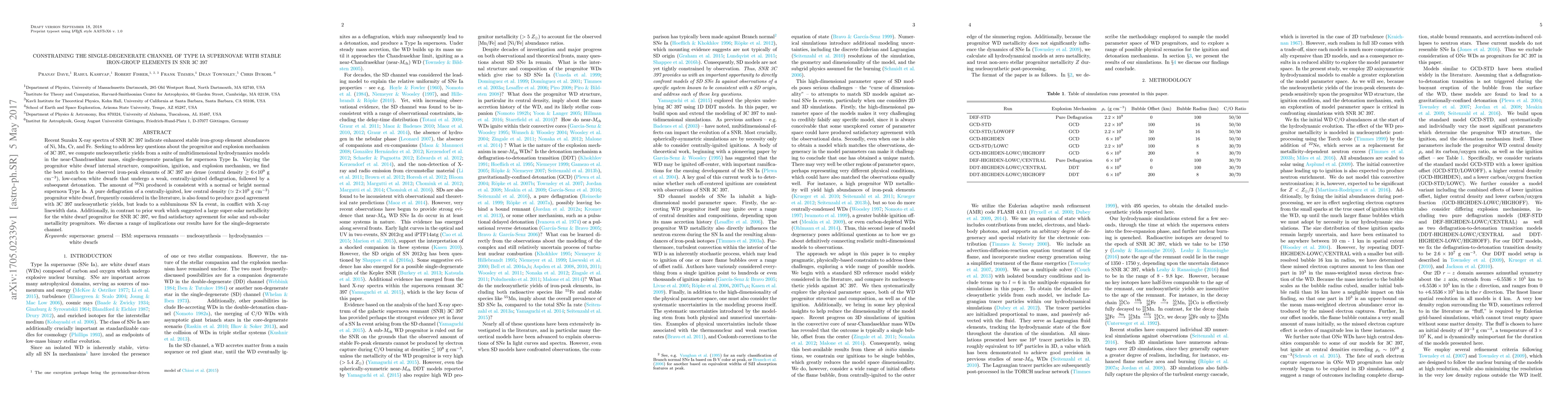 Recent Suzaku X-ray spectra of SNR 3C 397 indicate enhanced stable iron-group element abundances of Ni, Mn, Cr, and Fe. Seeking to address key questions about the progenitor and explosion mechanism of 3C 397, we compute nucleosynthetic yields from a suite of multidimensional hydrodynamics models in the near-Chandrasekhar mass, single-degenerate paradigm for supernova Type Ia. Varying the progenitor white dwarf internal structure, composition, ignition, and explosion mechanism, we find the best match to the observed iron-peak elements of 3C 397 are dense (central density $\ge$ 6$\times$10$^{9}$ g cm$^{-3}$), low-carbon white dwarfs that undergo a weak, centrally-ignited deflagration, followed by a subsequent detonation. The amount of $^{56}$Ni produced is consistent with a normal or bright normal supernova Type Ia. A pure deflagration of a centrally-ignited, low central density ($\simeq$ 2$\times$10$^{9}$ g cm$^{-3}$) progenitor white dwarf, frequently considered in the literature, is also found to produce good agreement with 3C 397 nucleosynthetic yields, but leads to a subluminous SN Ia event, in conflict with X-ray linewidth data. Additionally, in contrast to prior work which suggested a large super-solar metallicity for the white dwarf progenitor for SNR 3C 397, we find satisfactory agreement for solar and sub-solar metallicity progenitors. We discuss a range of implications our results have for the single-degenerate channel.