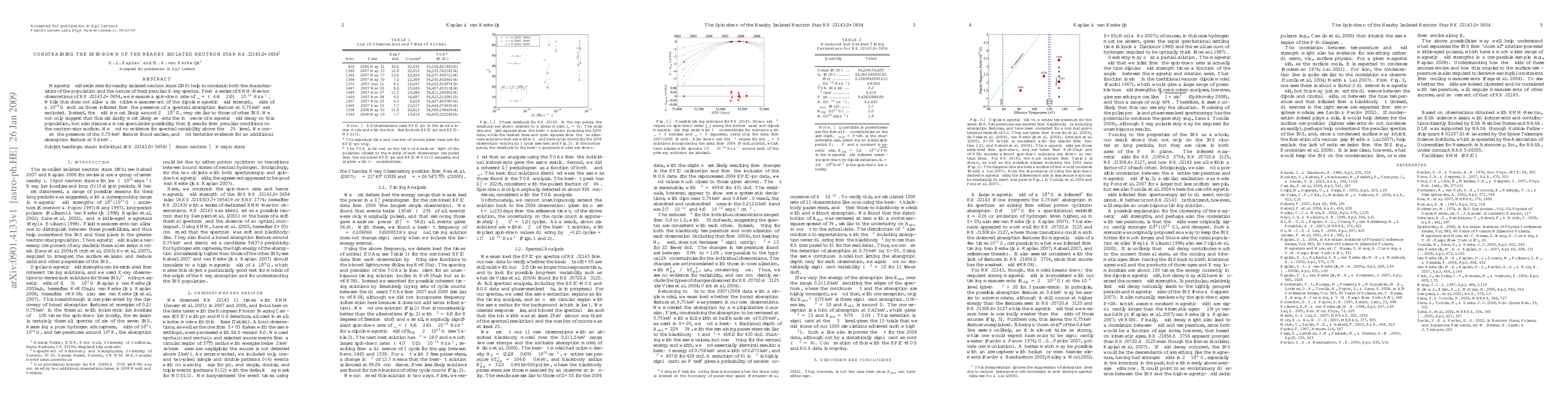 Magnetic field estimates for nearby isolated neutron stars (INS) help to constrain both the characteristics of the population and the nature of their peculiar X-ray spectra. From a series of XMM-Newton observations of RX J2143.0+0654, we measure a spin-down rate of -4.6e-16 +/- 2.0e-16 Hz/s. While this does not allow a definitive measurement of the dipole magnetic field strength, fields of >1e14 G such as those inferred from the presence of a spectral absorption feature at 0.75keV are excluded. Instead, the field is most likely around 2e13 G, very similar to those of other INS. We not only suggest that this similarity most likely reflects the influence of magnetic field decay on this population, but also discuss a more speculative possibility that it results from peculiar conditions on the neutron-star surface. We find no evidence for spectral variability above the ~2% level. We confirm the presence of the 0.75-keV feature found earlier, and find tentative evidence for an additional absorption feature at 0.4 keV.