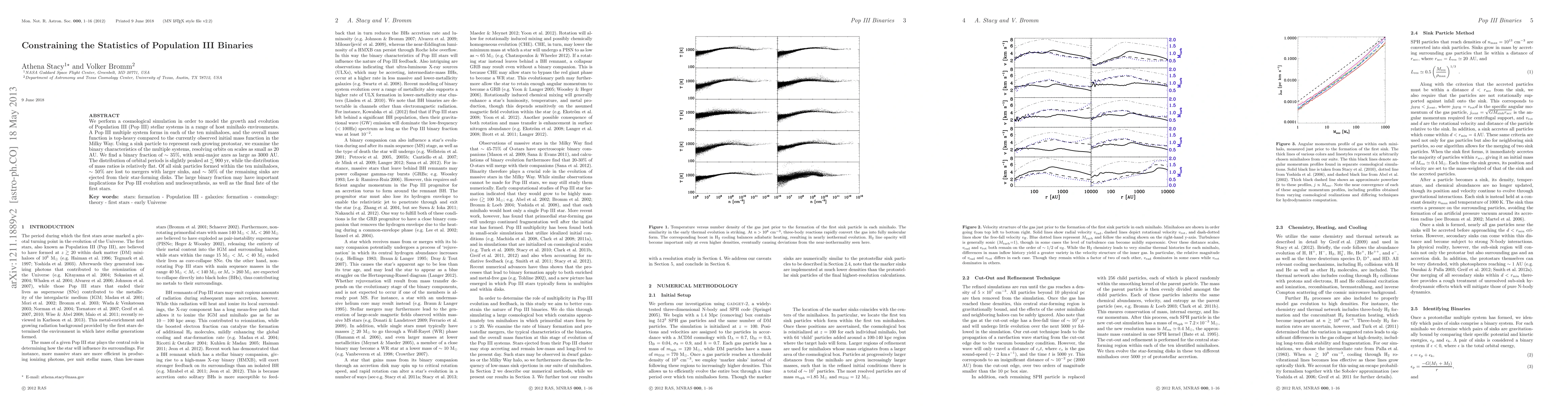 We perform a cosmological simulation in order to model the growth and evolution of Population III (Pop III) stellar systems in a range of host minihalo environments. A Pop III multiple system forms in each of the ten minihaloes, and the overall mass function is top-heavy compared to the currently observed initial mass function in the Milky Way. Using a sink particle to represent each growing protostar, we examine the binary characteristics of the multiple systems, resolving orbits on scales as small as 20 AU. We find a binary fraction of ~36%, with semi-major axes as large as 3000 AU. The distribution of orbital periods is slightly peaked at < 900 yr, while the distribution of mass ratios is relatively flat. Of all sink particles formed within the ten minihaloes, ~50% are lost to mergers with larger sinks, and ~50% of the remaining sinks are ejected from their star-forming disks. The large binary fraction may have important implications for Pop III evolution and nucleosynthesis, as well as the final fate of the first stars.