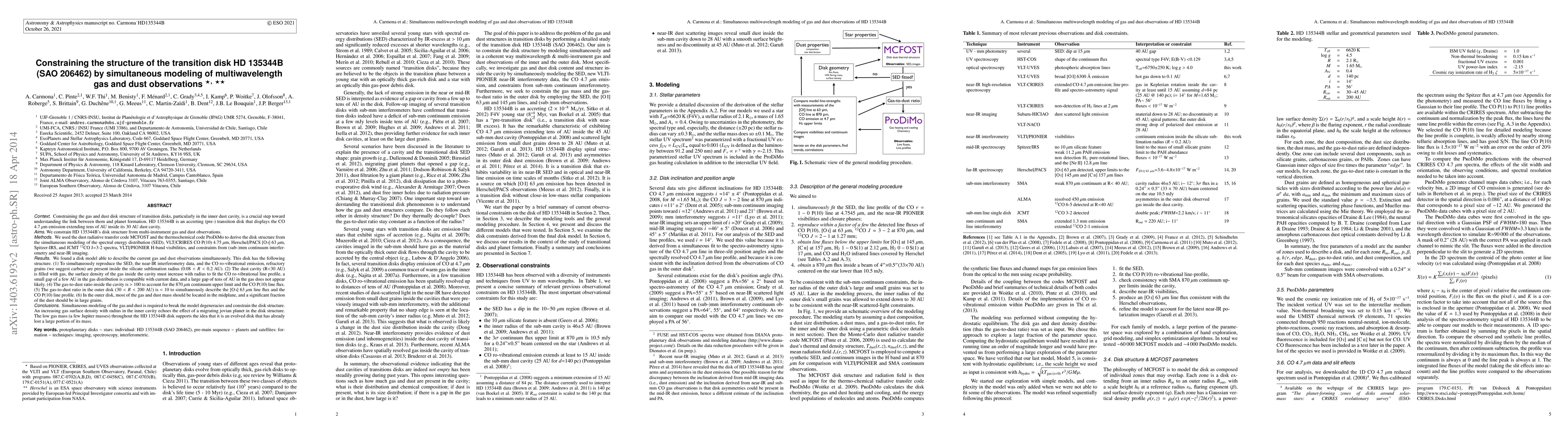 of warm CO extending tens of AU inside its 30 AU dust cavity. We used the dust
