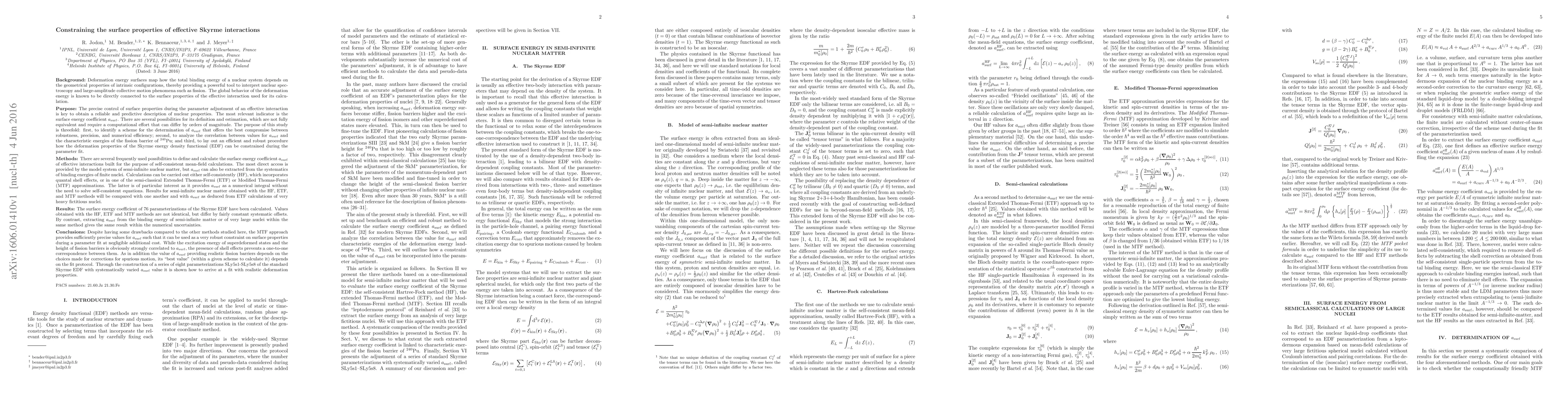 The purpose of this study is threefold: first, to identify a scheme for the determination of the surface energy coefficient a_surf that offers the best compromise between robustness, precision, and numerical efficiency; second, to analyze the correlation between values for a_surf and the characteristic energies of the fission barrier of Pu240; and third, to lay out a procedure how the deformation properties of the Skyrme energy density functional (EDF) can be constrained during the parameter fit. There are several frequently used possibilities to define and calculate the surface energy coefficient a_surf of effective interactions. The most direct access is provided by the model system of semi-infinite nuclear matter, but a_surf can also be extracted from the systematics of binding energies of finite nuclei. Calculations can be carried out either self-consistently (HF), which incorporates quantal shell effects, or in one of the semi-classical Extended Thomas-Fermi (ETF) or Modified Thomas-Fermi (MTF) approximations. The surface energy coefficient of 76 parameterizations of the Skyrme EDF have been calculated. Values obtained with the HF, ETF and MTF methods are not identical, but differ by fairly constant systematic offsets. Despite having some drawbacks compared to the other methods studied here, the MTF approach provides sufficiently precise values for a_surf such that it can be used as a very robust constraint on surface properties during a parameter fit at negligible additional cost. Through the construction of a series of eight parameterizations SLy5s1-SLy5s8 of the standard Skyrme EDF with systematically varied a_surf value it is shown how to arrive at a fit with realistic deformation properties. [Note: The abstract has been abbreviated because of length restrictions imposed by the arXiv. See the paper for the full abstract.]