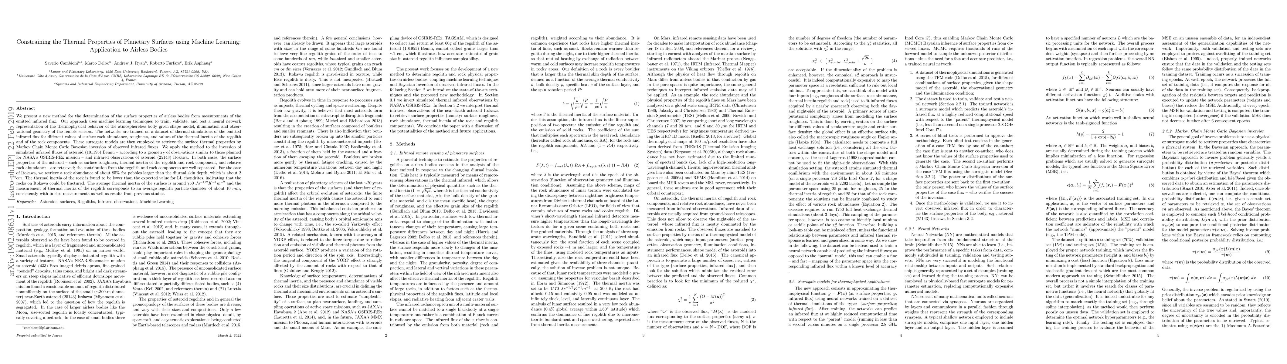 This paper introduces a machine learning method to determine the thermal properties of airless bodies using infrared flux measurements. The neural network trained on thermal simulations retrieves surface properties like roughness and thermal inertia, applied successfully to asteroids Bennu and Itokawa, revealing insights into their regolith and rock compositions.