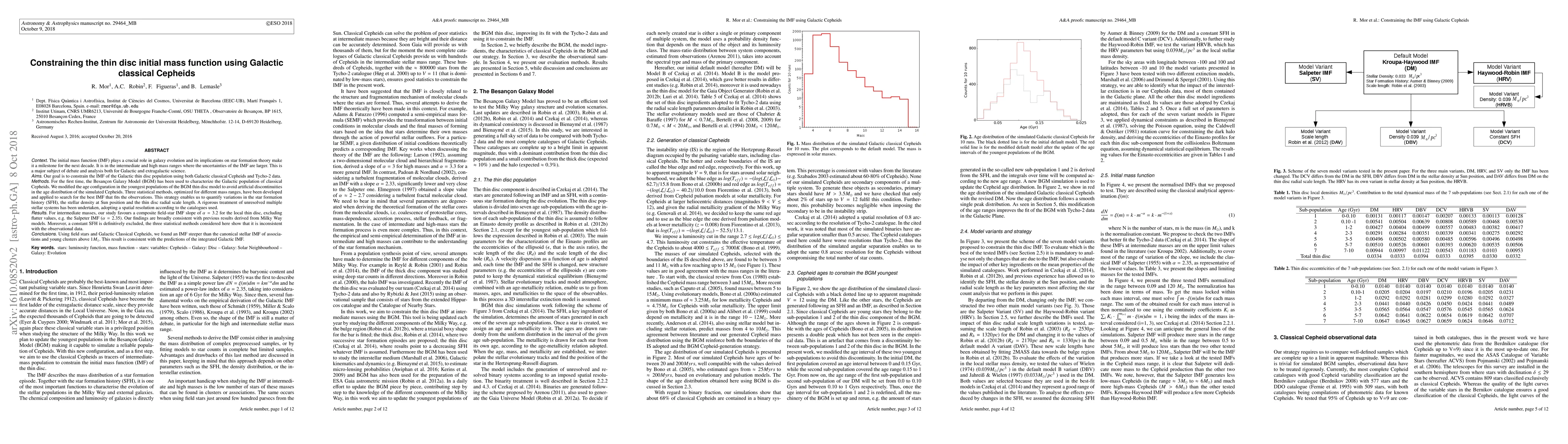 This study uses Galactic Classical Cepheids and Tycho-2 data to constrain the Initial Mass Function (IMF) of the thin disc population, finding a steeper IMF slope of $\alpha=3.2$ for intermediate masses, excluding the Salpeter IMF. The research also rejects a constant Star Formation History, supporting a more complex stellar evolution model.
