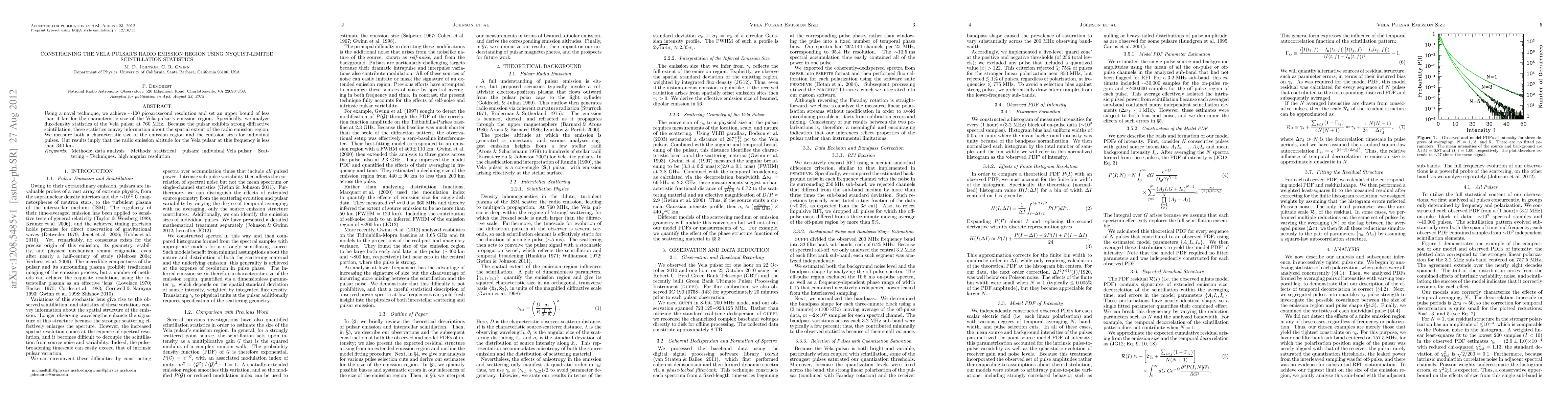 This paper uses Nyquist-limited scintillation statistics to achieve a resolution of ~100 picoarcseconds, establishing an upper bound of less than 4 km for the Vela pulsar's emission region size. The analysis at 760 MHz reveals that the radio emission altitude is less than 340 km.
