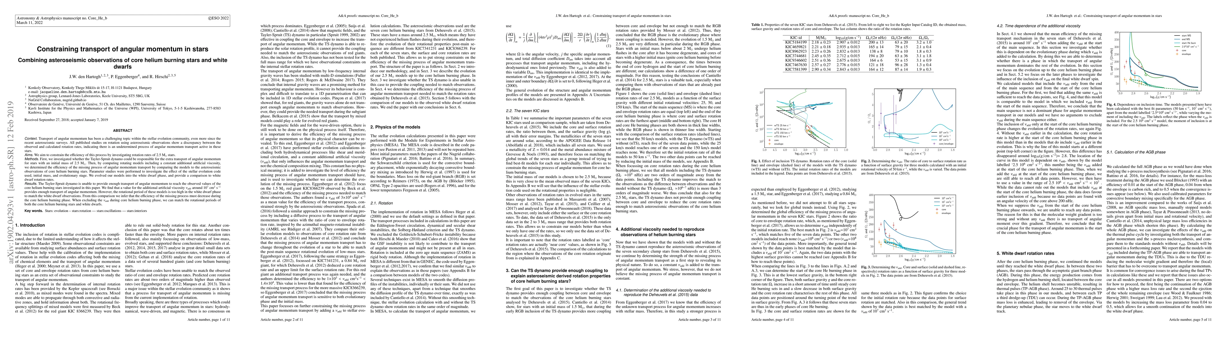 This paper investigates the discrepancy between observed and calculated rotation rates in 2.5 M$_{\odot}$ stars using asteroseismic observations, finding that the Tayler-Spruit dynamo is insufficient. It concludes that an additional artificial viscosity of around 10$^7$ cm$^2$ s$^{-1}$ is needed for angular momentum transport, but this model fails to match white dwarf rotation rates, suggesting a decrease in transport efficiency during the core helium burning phase.