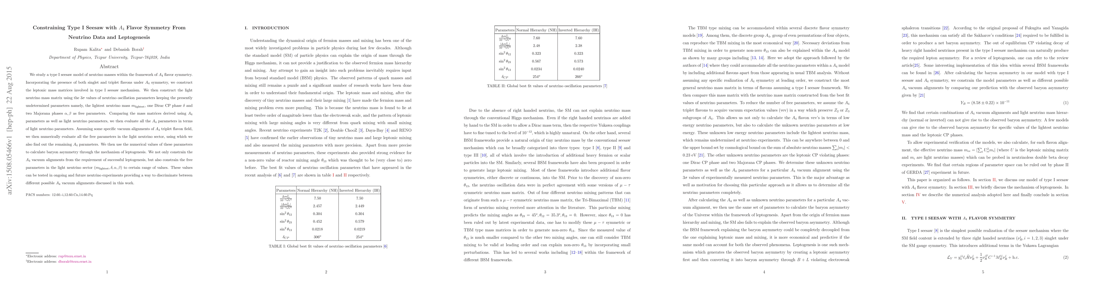 This paper explores a type I seesaw model under $A_4$ flavor symmetry, deriving light neutrino mass matrices from neutrino oscillation parameters and determining $A_4$ parameters. It uses these to calculate baryon asymmetry via leptogenesis, constraining both $A_4$ vacuum alignments and light neutrino sector parameters, which can be tested in future neutrino experiments.