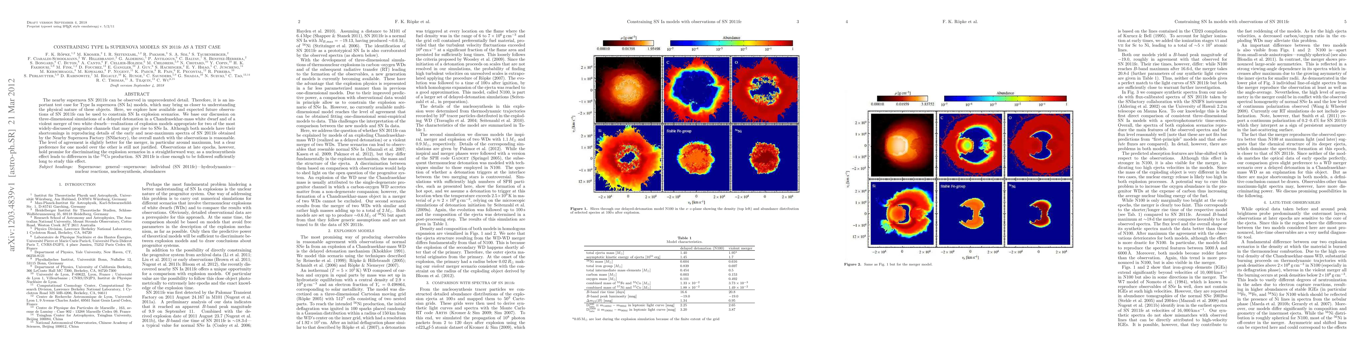This paper uses detailed observations of the nearby supernova SN 2011fe to test two leading models for Type Ia supernovae: delayed detonation in a white dwarf and a merger of two white dwarfs. While both models show reasonable agreement with early observations, late-epoch observations may help distinguish between them due to differences in cobalt-55 production.