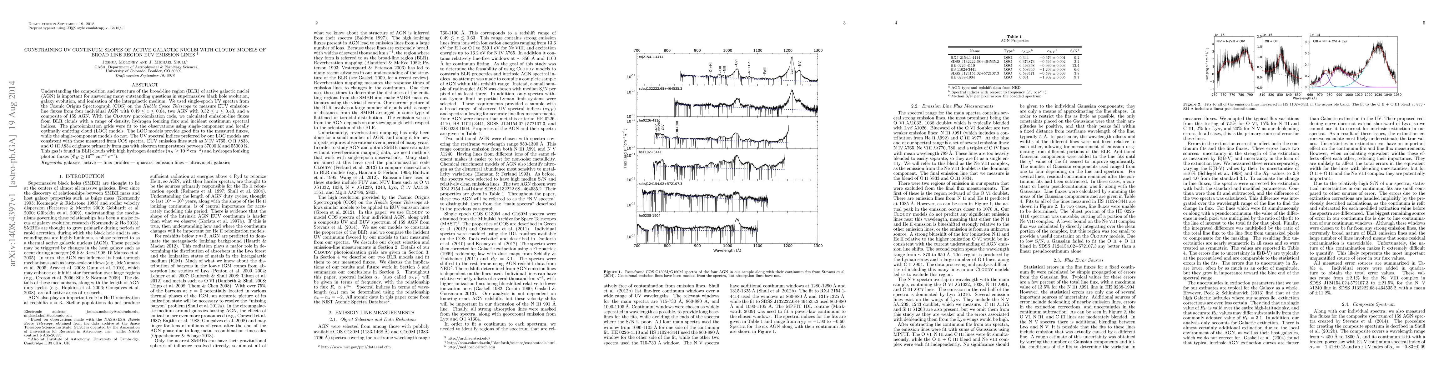 This study uses UV spectra from the Hubble Space Telescope to analyze EUV emission lines from AGN, employing CLOUDY models to fit observed data. Locally optimally emitting cloud models provide better fits than single-component models, indicating high-density gas regions in the broad-line region contribute significantly to the observed EUV emission lines.