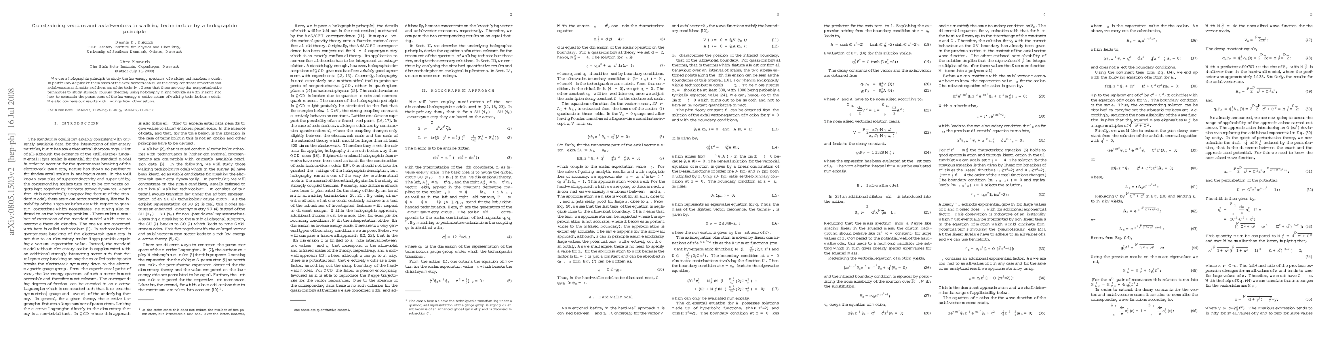 We use a holographic principle to study the low-energy spectrum of walking technicolour models. In particular, we predict the masses of the axial vectors as well as the decay constants of vectors and axial vectors as functions of the mass of the techni-rho. Given that there are very few nonperturbative techniques to study strongly coupled theories, using holography might provide us with insight into how to constrain the parameters of the low-energy effective action of walking technicolour models. We also compare our results with findings from other setups.