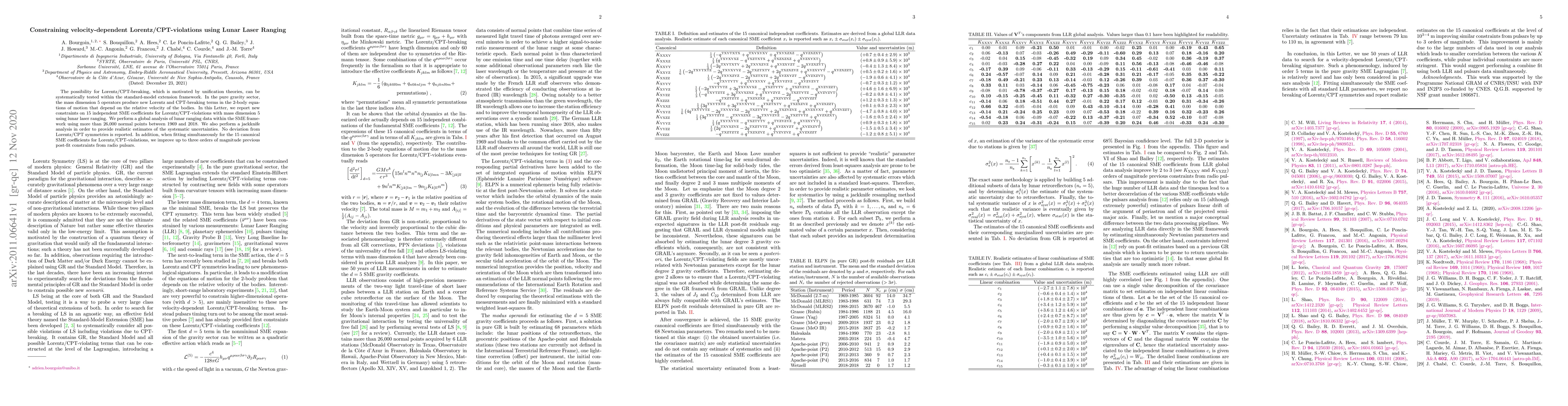 This paper reports new constraints on Lorentz/CPT-violations using lunar laser ranging data, improving previous limits by up to three orders of magnitude. The study analyzes over 26,000 normal points from 1969 to 2018 and finds no deviations from Lorentz/CPT symmetries.