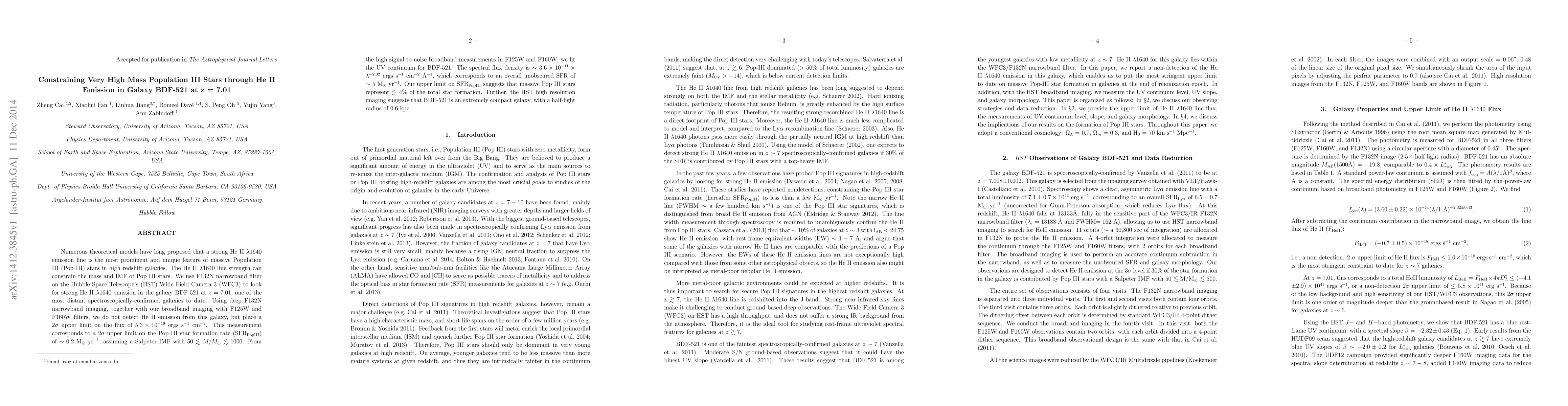 Researchers found no He II 1640 emission from a galaxy at z=7.01, setting a 2-sigma upper limit on the mass of massive Population III stars to ~0.2 M_solar yr^-1.
