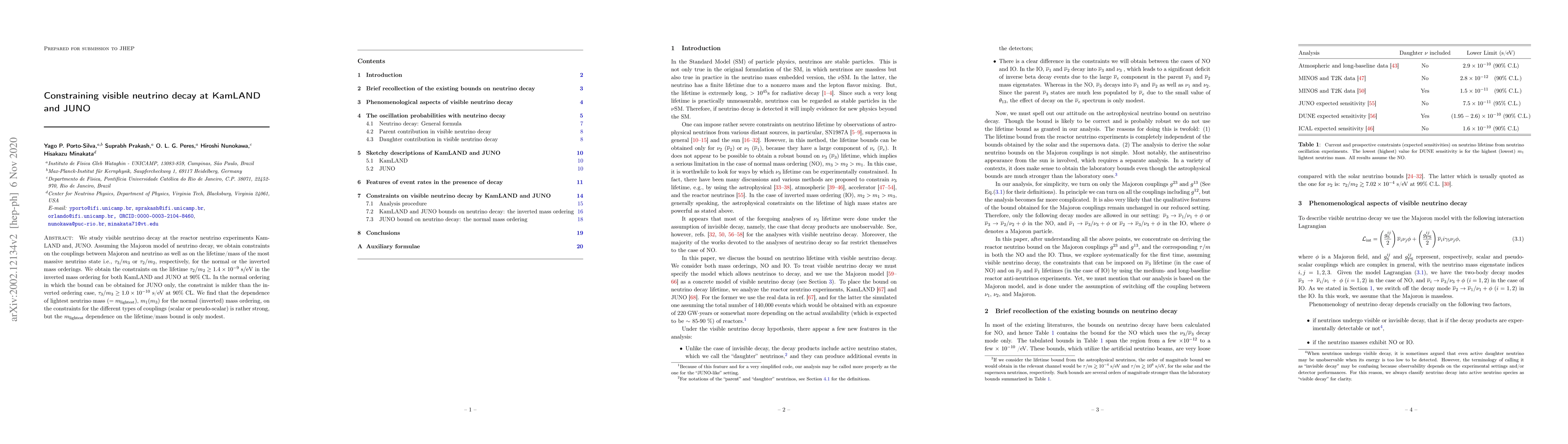 Researchers constrain visible neutrino decay at KamLAND and JUNO experiments, setting limits on Majoron model couplings and lifetime/mass bounds for normal and inverted mass orderings.
