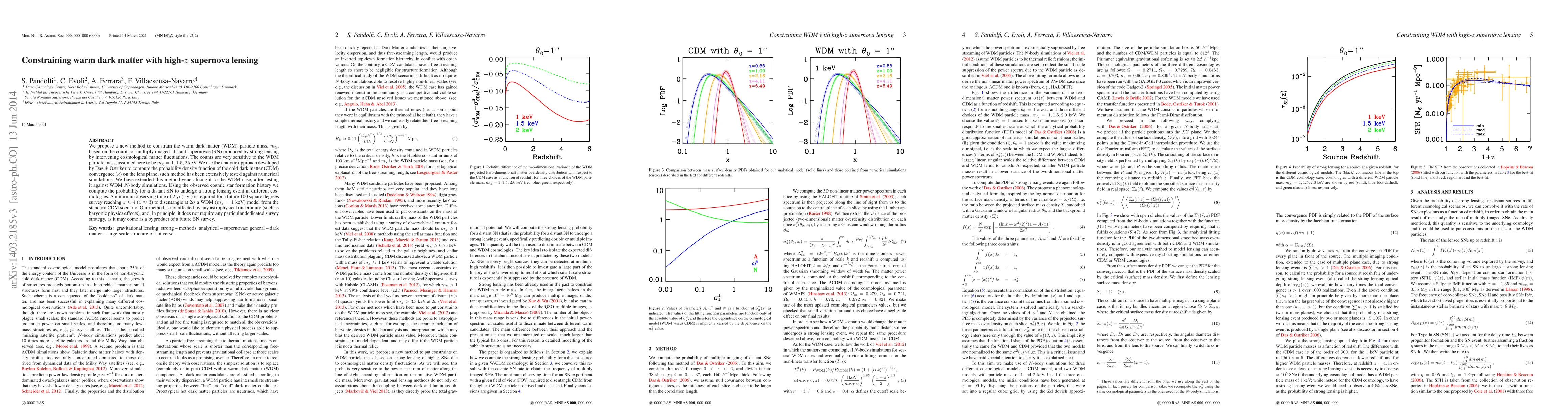 This paper proposes a new method to constrain warm dark matter particle mass using counts of multiply imaged distant supernovae produced by strong lensing. The method, tested against simulations, suggests a future survey could distinguish between warm dark matter models and the standard cold dark matter scenario with minimal observing time.