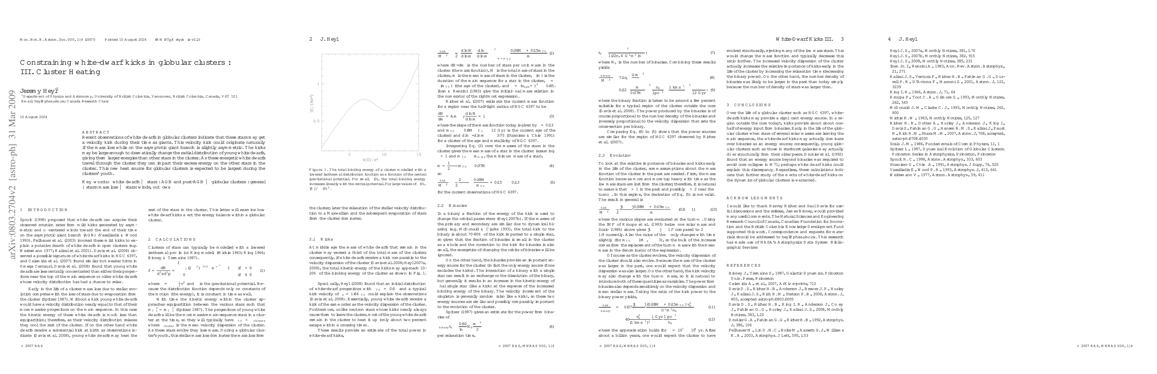 Recent observations of white dwarfs in globular clusters indicate that these stars may get a velocity kick during their time as giants. This velocity kick could originate naturally if the mass loss while on the asymptotic giant branch is slightly asymmetric. The kicks may be large enough to dramatically change the radial distribution of young white dwarfs, giving them larger energies than other stars in the cluster. As these energetic white dwarfs travel through the cluster they can impart their excess energy on the other stars in the cluster. This new heat source for globular clusters is expected to be largest during the clusters' youth.