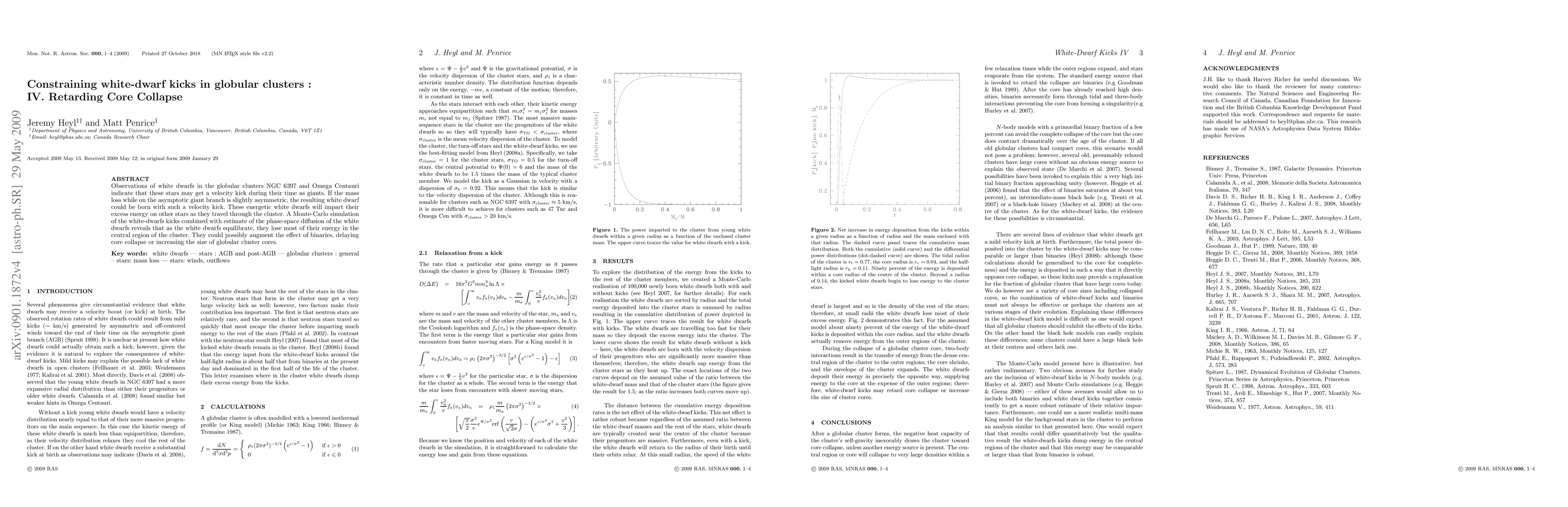 Observations of white dwarfs in the globular clusters NGC 6397 and Omega Centauri indicate that these stars may get a velocity kick during their time as giants. If the mass loss while on the asymptotic giant branch is slightly asymmetric, the resulting white dwarf could be born with such a velocity kick. These energetic white dwarfs will impart their excess energy on other stars as they travel through the cluster. A Monte-Carlo simulation of the white-dwarfs kicks combined with estimate of the phase-space diffusion of the white dwarfs reveals that as the white dwarfs equilibrate, they lose most of their energy in the central region of the cluster. They could possibly augment the effect of binaries, delaying core collapse or increasing the size of globular cluster cores.