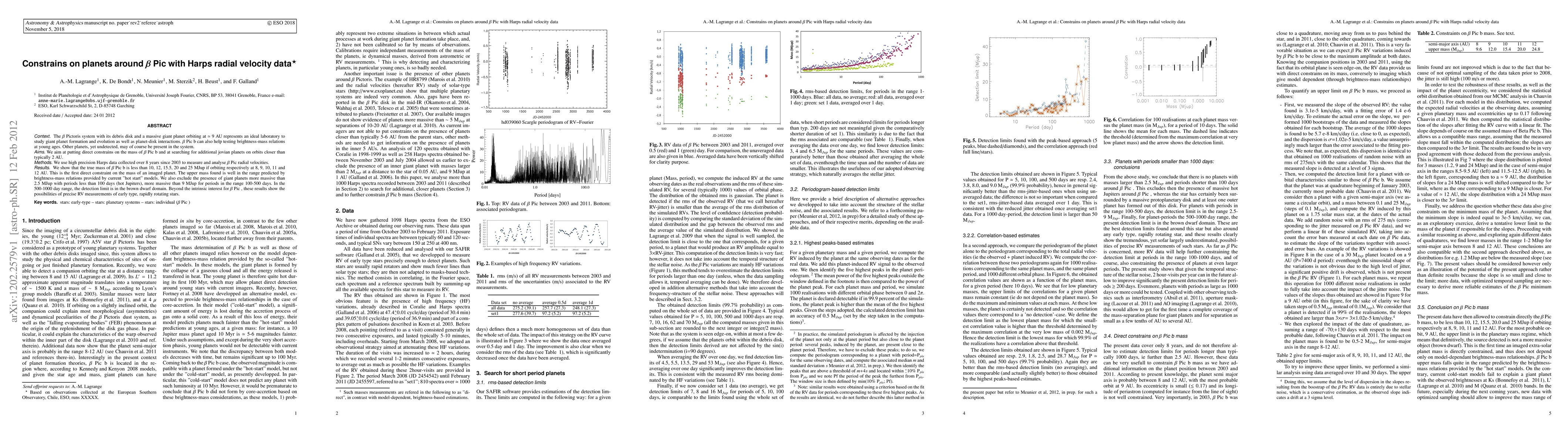 Context. The {\beta} Pictoris system with its debris disk and a massive giant planet orbiting at \simeq 9 AU represents an ideal laboratory to study giant planet formation and evolution as well as planet-disk interactions. {\beta} Pic b can also help testing brightness-mass relations at young ages. Other planets, yet undetected, may of course be present in the system. Aims. We aim at putting direct constrains on the mass of {\beta} Pic b and at searching for additional jovian planets on orbits closer than typically 2 AU. Methods. We use high precision Harps data collected over 8 years since 2003 to measure and analyse {\beta} Pic radial velocities. Results. We show that the true mass of {\beta} Pic b is less than 10, 12, 15.5, 20 and 25 MJup if orbiting respectively at 8, 9, 10, 11 and 12 AU. This is the first direct constraint on the mass of an imaged planet. The upper mass found is well in the range predicted by brightness-mass relations provided by current "hot start" models. We also exclude the presence of giant planets more massive than 2.5 MJup with periods less than 100 days (hot Jupiters), more massive than 9 MJup for periods in the range 100-500 days. In the 500-1000 day range, the detection limit is in the brown dwarf domain. Beyond the intrinsic interest for {\beta} Pic, these results show the possibilities of precise RV measurements of early type, rapidly rotating stars.