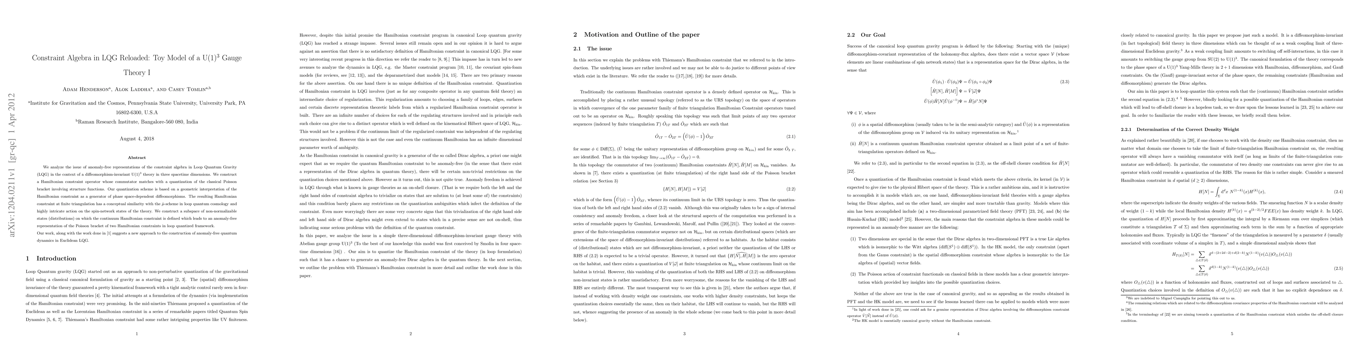 The paper presents a novel Hamiltonian constraint operator for a 3D diffeomorphism-invariant gauge theory, ensuring anomaly-free representations of the constraint algebra in Loop Quantum Gravity (LQG). This operator, based on geometric interpretation, shares conceptual similarities with the 'mu-bar' scheme in loop quantum cosmology and acts intricately on spin-network states. A subspace of non-normalizable states is constructed to define the continuum Hamiltonian constraint, leading to an anomaly-free Poisson bracket representation.