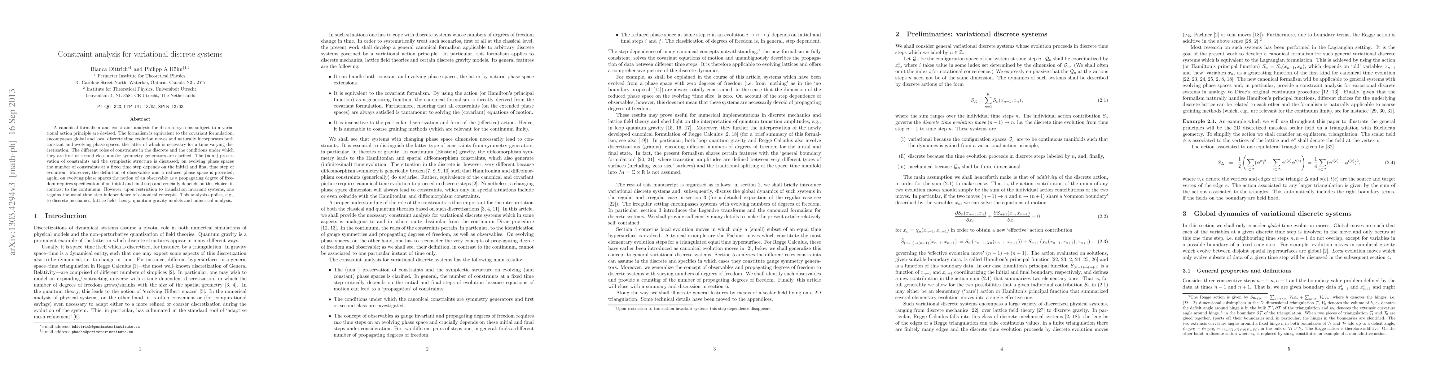 Researchers develop a formalism for analyzing discrete systems governed by variational action principles, highlighting key aspects of constraints, symplectic structure, and observable definitions.