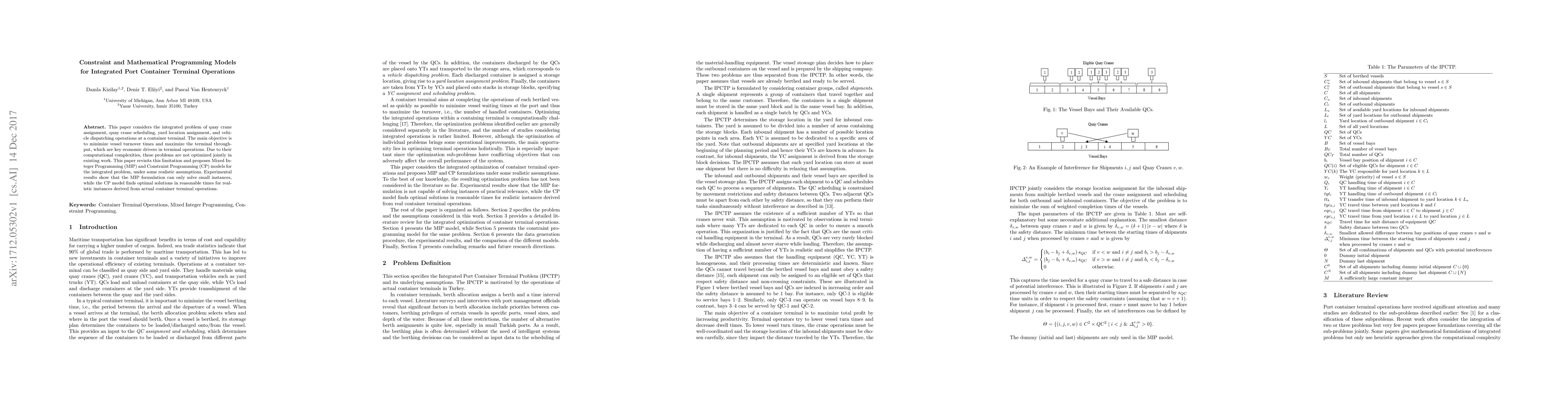 This paper proposes Mixed Integer Programming (MIP) and Constraint Programming (CP) models to jointly optimize quay crane assignment, scheduling, yard location, and vehicle dispatching at container terminals. The CP model effectively finds optimal solutions for realistic instances, outperforming the MIP model which struggles with larger instances.