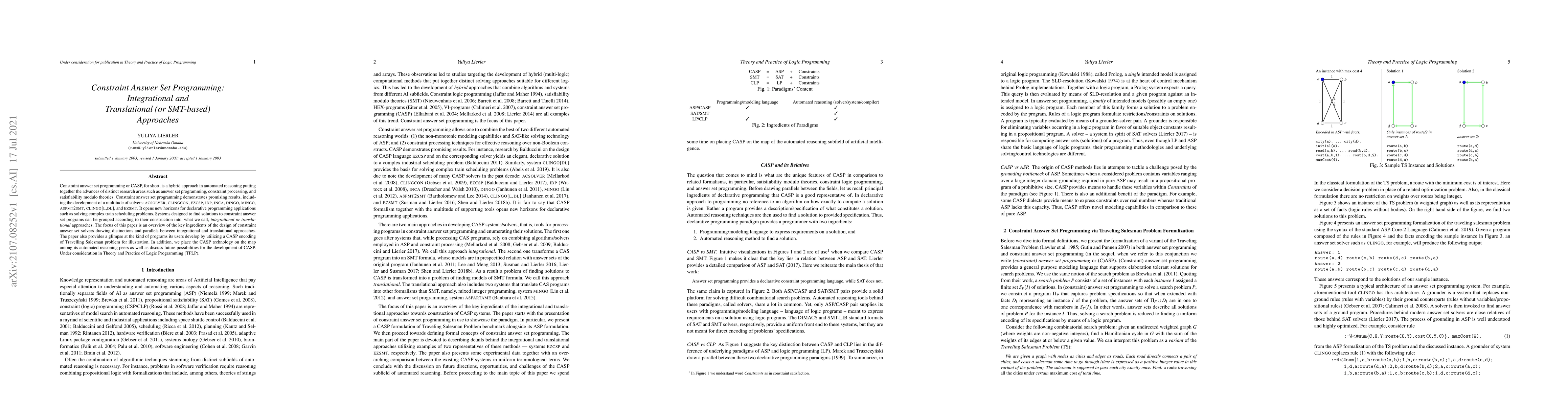 Constraint answer set programming or CASP, for short, is a hybrid approach in automated reasoning putting together the advances of distinct research areas such as answer set programming, constraint processing, and satisfiability modulo theories. Constraint answer set programming demonstrates promising results, including the development of a multitude of solvers: acsolver, clingcon, ezcsp, idp, inca, dingo, mingo, aspmt, clingo[l,dl], and ezsmt. It opens new horizons for declarative programming applications such as solving complex train scheduling problems. Systems designed to find solutions to constraint answer set programs can be grouped according to their construction into, what we call, integrational or translational approaches. The focus of this paper is an overview of the key ingredients of the design of constraint answer set solvers drawing distinctions and parallels between integrational and translational approaches. The paper also provides a glimpse at the kind of programs its users develop by utilizing a CASP encoding of Travelling Salesman problem for illustration. In addition, we place the CASP technology on the map among its automated reasoning peers as well as discuss future possibilities for the development of CASP.