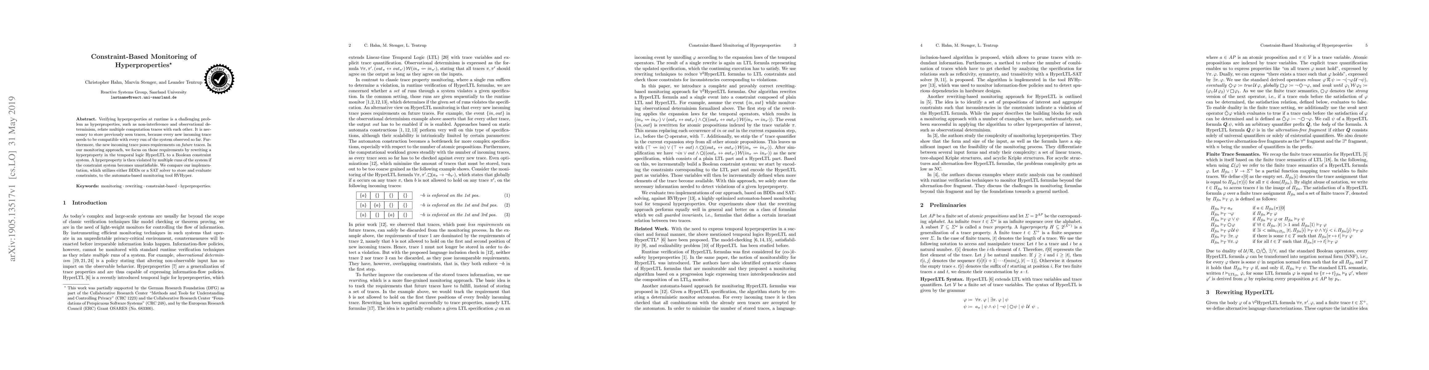This paper proposes a constraint-based runtime monitoring approach for verifying hyperproperties, which relate multiple computation traces. It rewrites hyperproperties in HyperLTL to Boolean constraints, detecting violations when the constraint system becomes unsatisfiable. The method is evaluated using BDDs or a SAT solver, and is compared to the RVHyper automata-based monitoring tool.