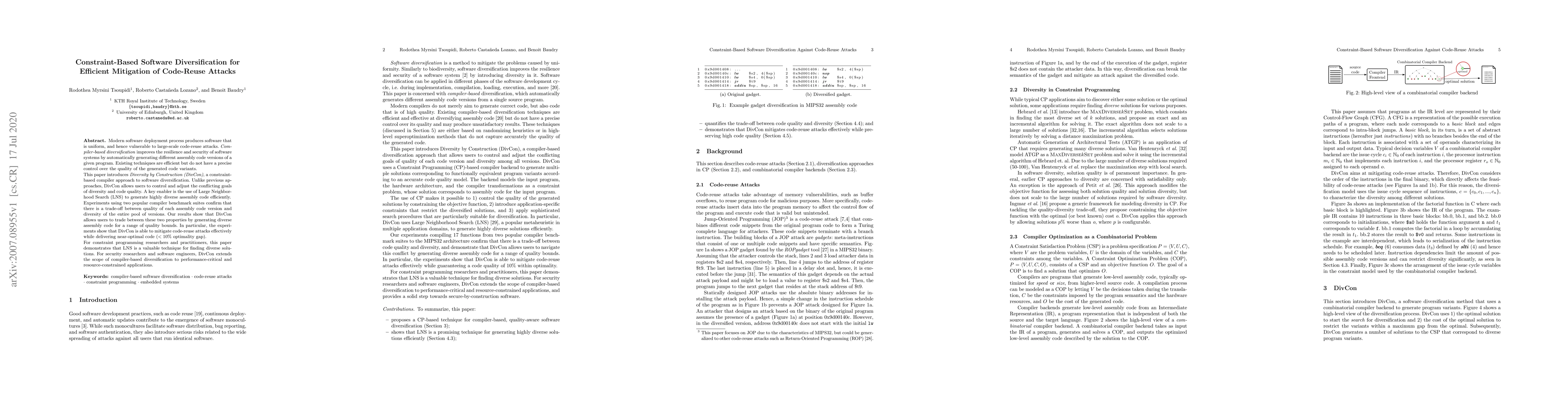 This paper introduces DivCon, a constraint-based compiler approach for software diversification that enables precise control over the balance between code diversity and quality. Using Large Neighborhood Search, DivCon effectively mitigates code-reuse attacks while delivering near-optimal code performance.