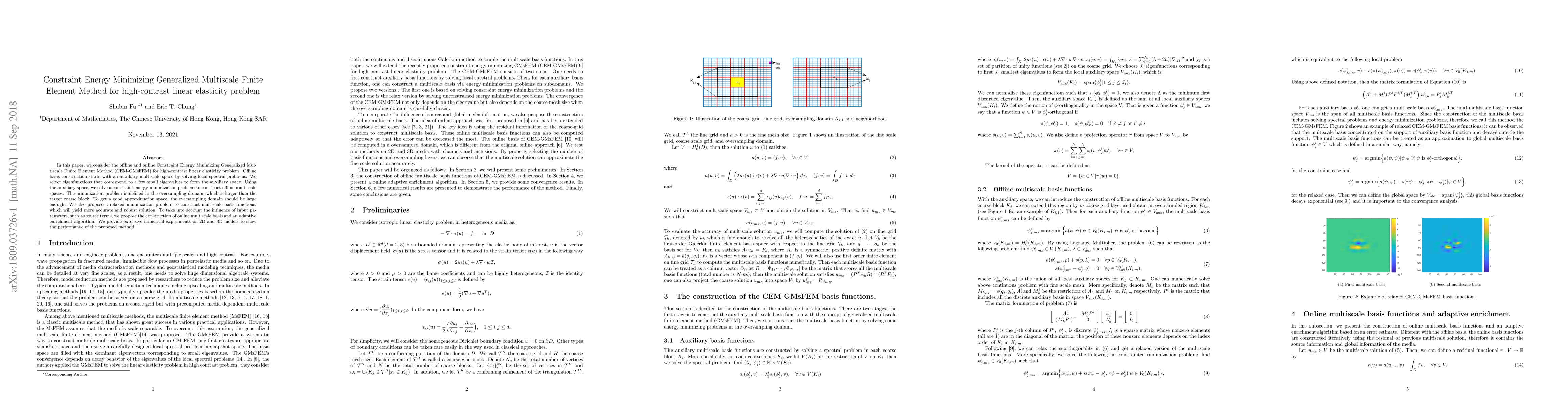 This paper introduces the Constraint Energy Minimizing Generalized Multiscale Finite Element Method (CEM-GMsFEM) for high-contrast linear elasticity problems, employing offline basis construction via an auxiliary multiscale space and an adaptive online approach to handle varying input parameters. Numerical experiments demonstrate the method's effectiveness.