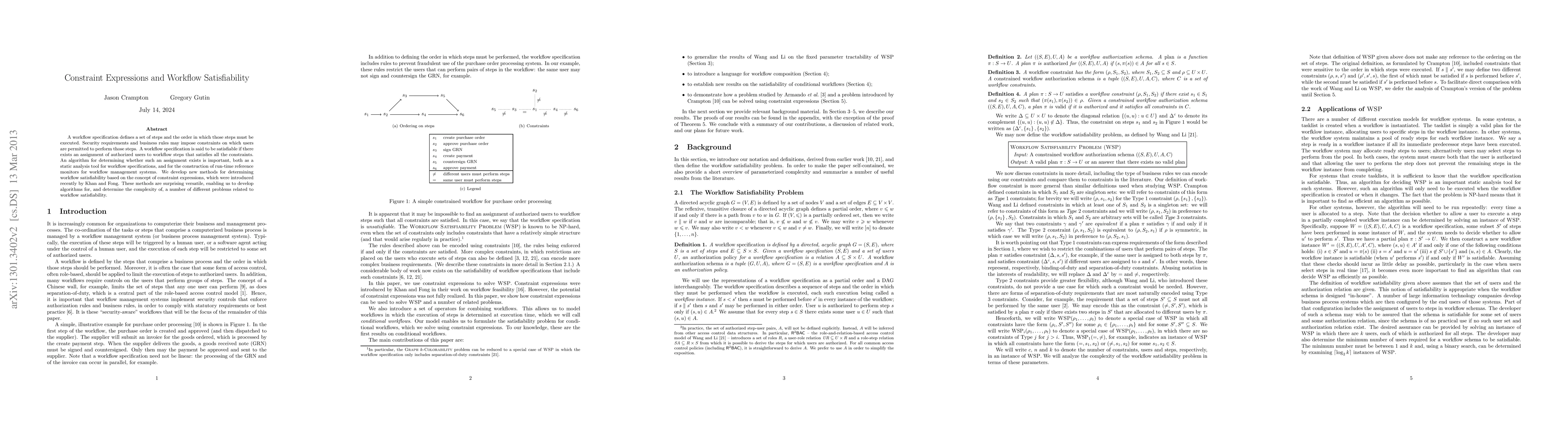 This paper develops new methods for determining the satisfiability of workflow specifications, which involves assigning authorized users to steps while satisfying imposed constraints. The authors introduce constraint expressions to create versatile algorithms for assessing workflow satisfiability and analyze the complexity of related problems.