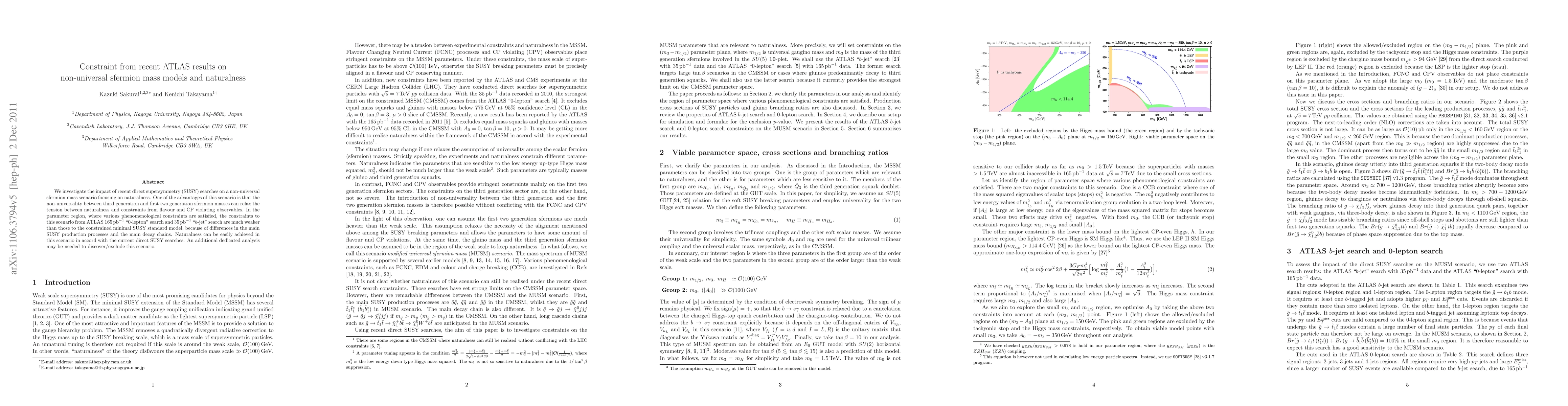 This paper examines how recent ATLAS searches affect non-universal sfermion mass models in supersymmetry, emphasizing naturalness. The study finds that these models can satisfy naturalness while being less constrained by ATLAS searches compared to the constrained minimal SUSY standard model, suggesting a need for dedicated analyses to explore this scenario.