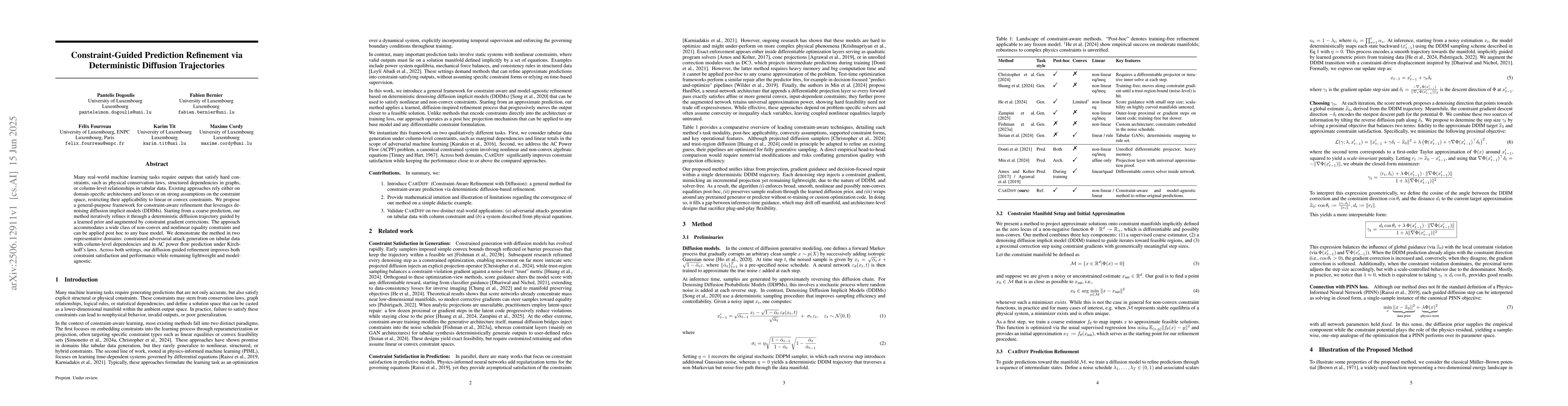 This research introduces a novel framework for refining machine learning predictions that adhere to constraints, using deterministic diffusion trajectories. The method, applicable to non-convex and nonlinear constraints, enhances constraint satisfaction and performance in tasks like adversarial attack generation and power flow prediction, while being model-agnostic and lightweight.
