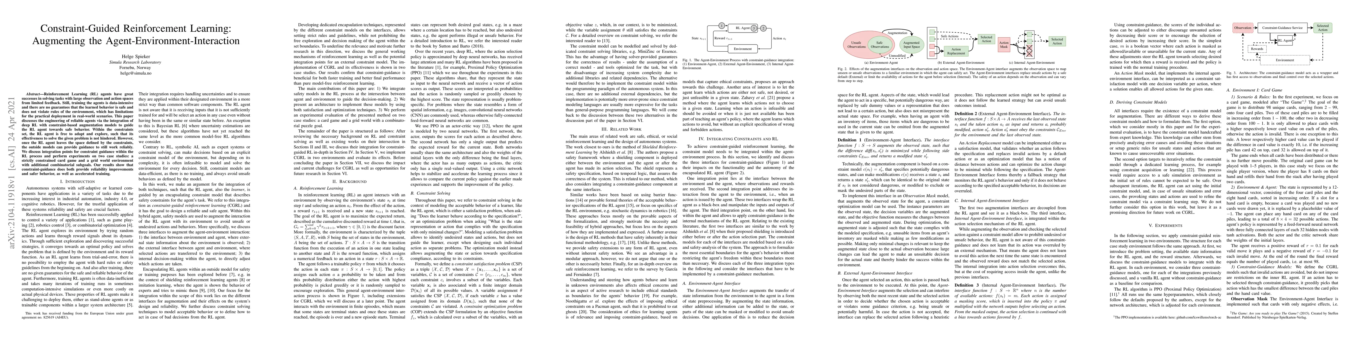 Reinforcement Learning (RL) agents have great successes in solving tasks with large observation and action spaces from limited feedback. Still, training the agents is data-intensive and there are no guarantees that the learned behavior is safe and does not violate rules of the environment, which has limitations for the practical deployment in real-world scenarios. This paper discusses the engineering of reliable agents via the integration of deep RL with constraint-based augmentation models to guide the RL agent towards safe behavior. Within the constraints set, the RL agent is free to adapt and explore, such that its effectiveness to solve the given problem is not hindered. However, once the RL agent leaves the space defined by the constraints, the outside models can provide guidance to still work reliably. We discuss integration points for constraint guidance within the RL process and perform experiments on two case studies: a strictly constrained card game and a grid world environment with additional combinatorial subgoals. Our results show that constraint-guidance does both provide reliability improvements and safer behavior, as well as accelerated training.