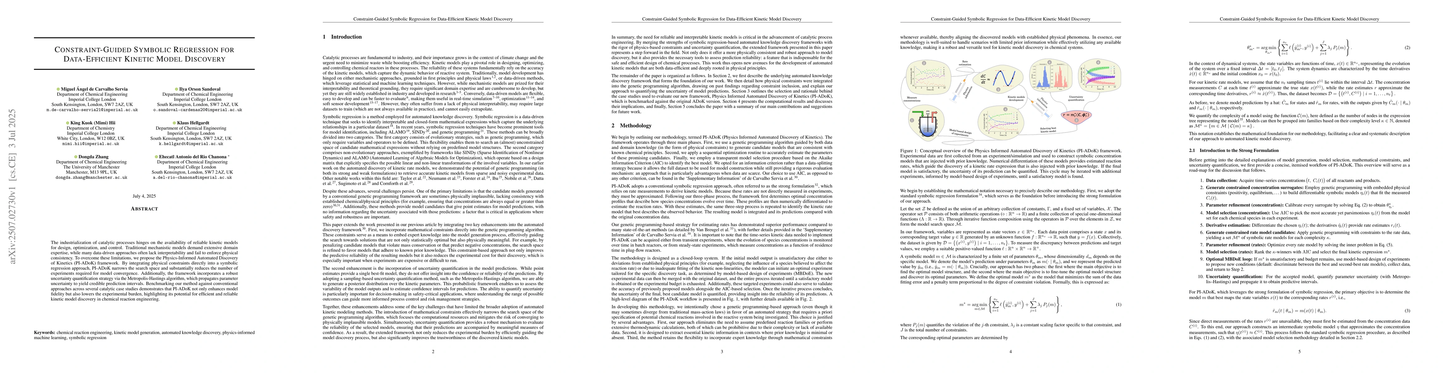 The industrialization of catalytic processes hinges on the availability of reliable kinetic models for design, optimization, and control. Traditional mechanistic models demand extensive domain expertise, while many data-driven approaches often lack interpretability and fail to enforce physical consistency. To overcome these limitations, we propose the Physics-Informed Automated Discovery of Kinetics (PI-ADoK) framework. By integrating physical constraints directly into a symbolic regression approach, PI-ADoK narrows the search space and substantially reduces the number of experiments required for model convergence. Additionally, the framework incorporates a robust uncertainty quantification strategy via the Metropolis-Hastings algorithm, which propagates parameter uncertainty to yield credible prediction intervals. Benchmarking our method against conventional approaches across several catalytic case studies demonstrates that PI-ADoK not only enhances model fidelity but also lowers the experimental burden, highlighting its potential for efficient and reliable kinetic model discovery in chemical reaction engineering.