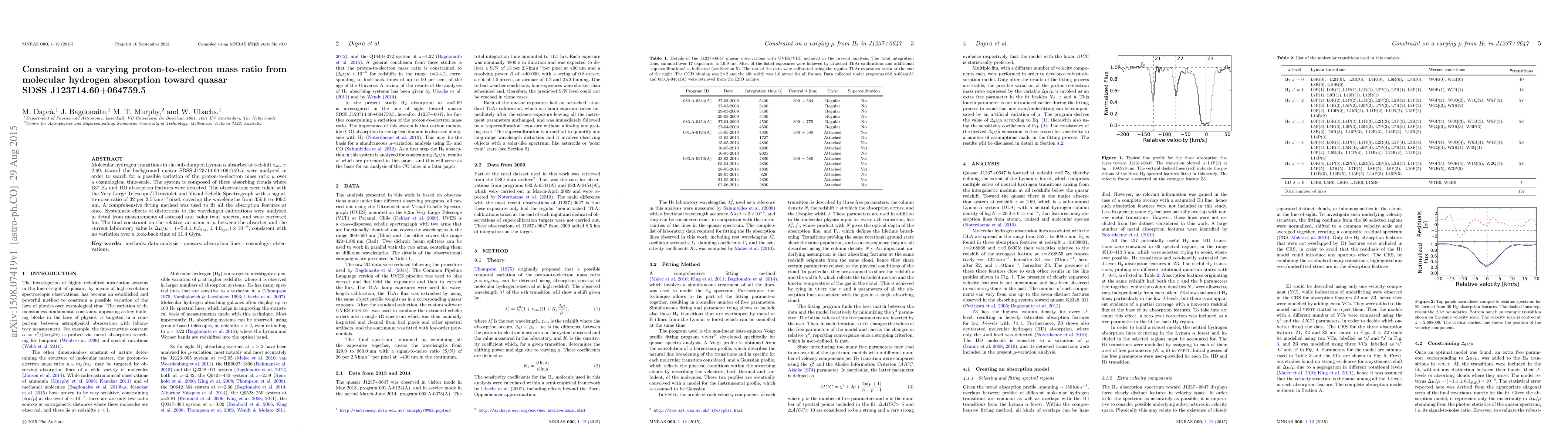 Molecular hydrogen transitions in the sub-damped Lyman alpha absorber at redshift z = 2.69, toward the background quasar SDSS J123714.60+064759.5, were analyzed in order to search for a possible variation of the proton-to-electron mass ratio mu over a cosmological time-scale. The system is composed of three absorbing clouds where 137 H2 and HD absorption features were detected. The observations were taken with the Very Large Telescope/Ultraviolet and Visual Echelle Spectrograph with a signal-to-noise ratio of 32 per 2.5 km/s pixel, covering the wavelengths from 356.6 to 409.5 nm. A comprehensive fitting method was used to fit all the absorption features at once. Systematic effects of distortions to the wavelength calibrations were analyzed in detail from measurements of asteroid and `solar twin' spectra, and were corrected for. The final constraint on the relative variation in mu between the absorber and the current laboratory value is dmu/mu = (-5.4 \pm 6.3 stat \pm 4.0 syst) x 10^(-6), consistent with no variation over a look-back time of 11.4 Gyrs.