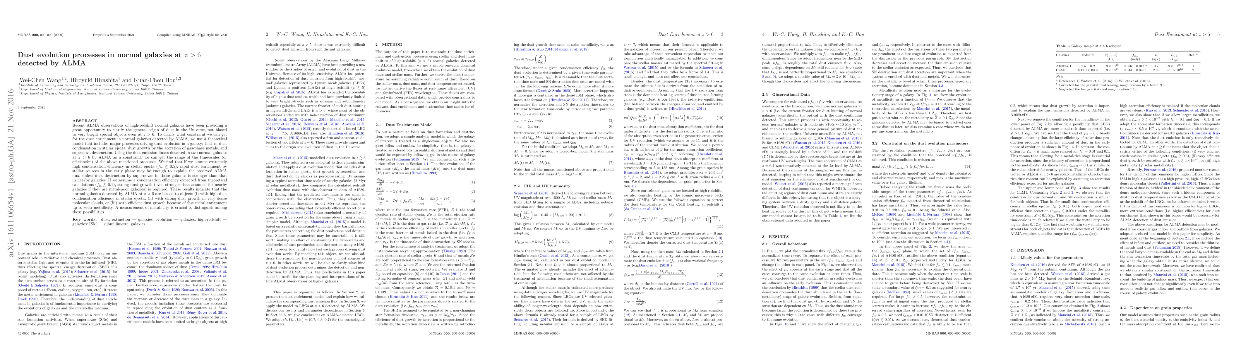 This paper uses ALMA observations of high-redshift galaxies to constrain dust evolution processes, finding that normal galaxies at $z>6$ likely have high dust condensation efficiency or strong dust growth, with metallicity measurements needed to distinguish between these scenarios.