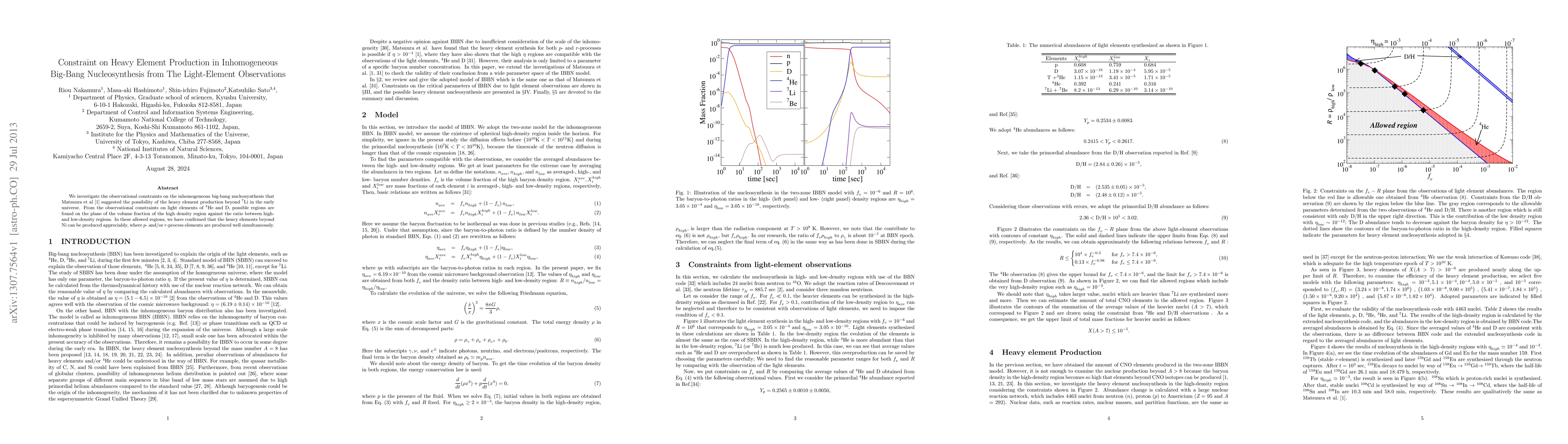 Researchers investigate constraints on heavy element production in the early universe, finding that certain regions allow for the creation of elements beyond Nickel, with p- and r-process elements produced simultaneously.