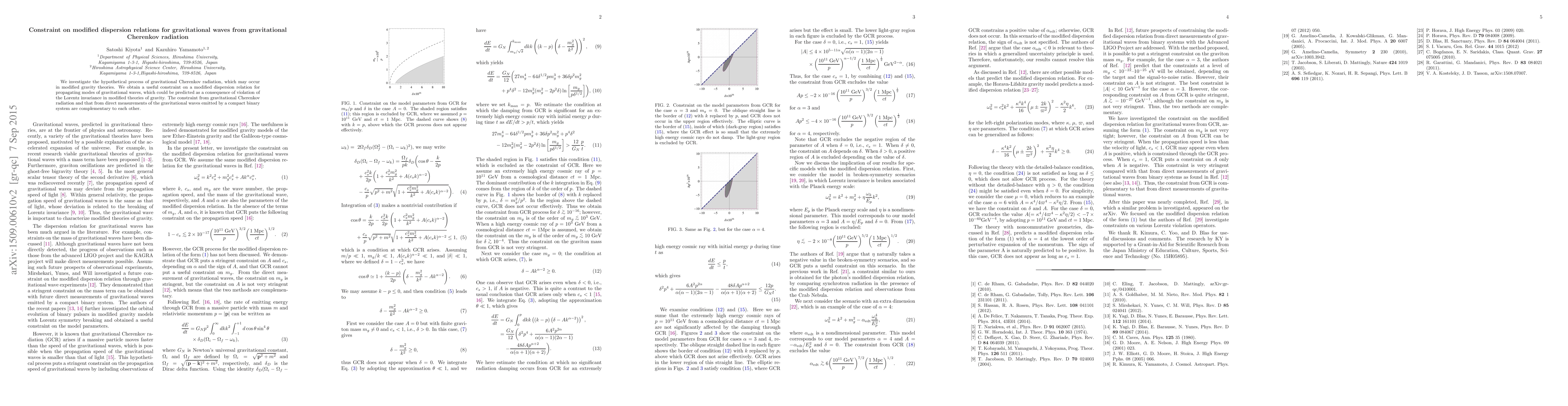 This paper investigates gravitational Cherenkov radiation in modified gravity theories, deriving a constraint on modified dispersion relations for gravitational waves. The findings complement constraints from direct gravitational wave measurements, enhancing our understanding of Lorentz invariance violations.