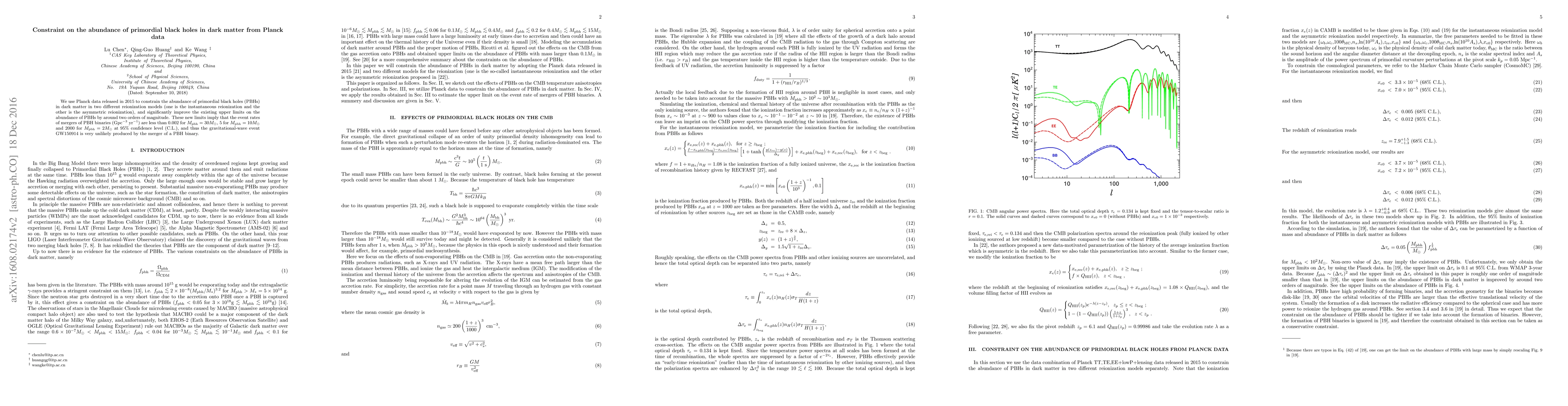 The study uses Planck data to constrain the abundance of primordial black holes in dark matter, setting new limits that imply PBH merger event rates are extremely low, making it unlikely for GW150914 to be produced by a PBH binary.