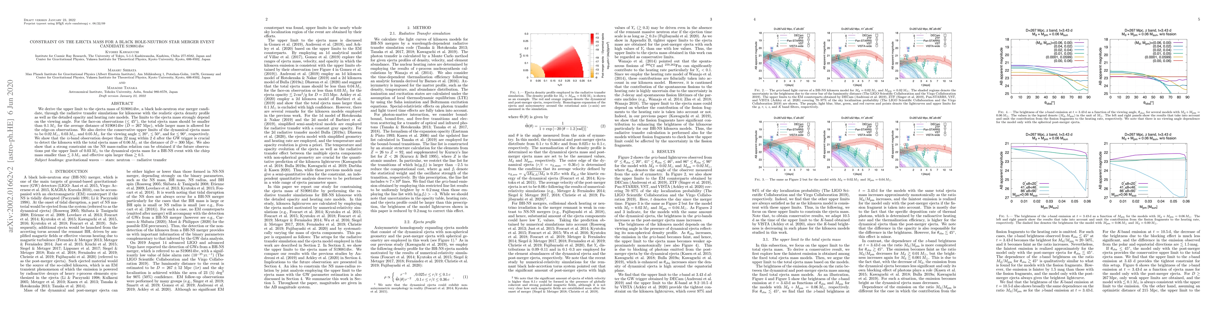 We derive the upper limit to the ejecta mass of S190814bv, a black hole-neutron star merger candidate, through the radiative transfer simulations for kilonovae with the realistic ejecta density profile as well as the detailed opacity and heating rate models. The limits to the ejecta mass strongly depend on the viewing angle. For the face-on observations ($\le45^\circ$), the total ejecta mass should be smaller than $0.1\,M_\odot$ for the average distance of S190814bv ($D=267$ Mpc), while larger mass is allowed for the edge-on observations. We also derive the conservative upper limits of the dynamical ejecta mass to be $0.02\,M_\odot$, $0.03\,M_\odot$, and $0.05\,M_\odot$ for the viewing angle $\le 20^\circ$, $\le 50^\circ$, and for $\le 90^\circ$, respectively. We show that the {\it iz}-band observation deeper than $22$ mag within 2 d after the GW trigger is crucial to detect the kilonova with the total ejecta mass of $0.06\,M_\odot$ at the distance of $D=300$ Mpc. We also show that a strong constraint on the NS mass-radius relation can be obtained if the future observations put the upper limit of $0.03\,M_\odot$ to the dynamical ejecta mass for a BH-NS event with the chirp mass smaller than $\lesssim 3\,M_\odot$ and effective spin larger than $\gtrsim 0.5$.