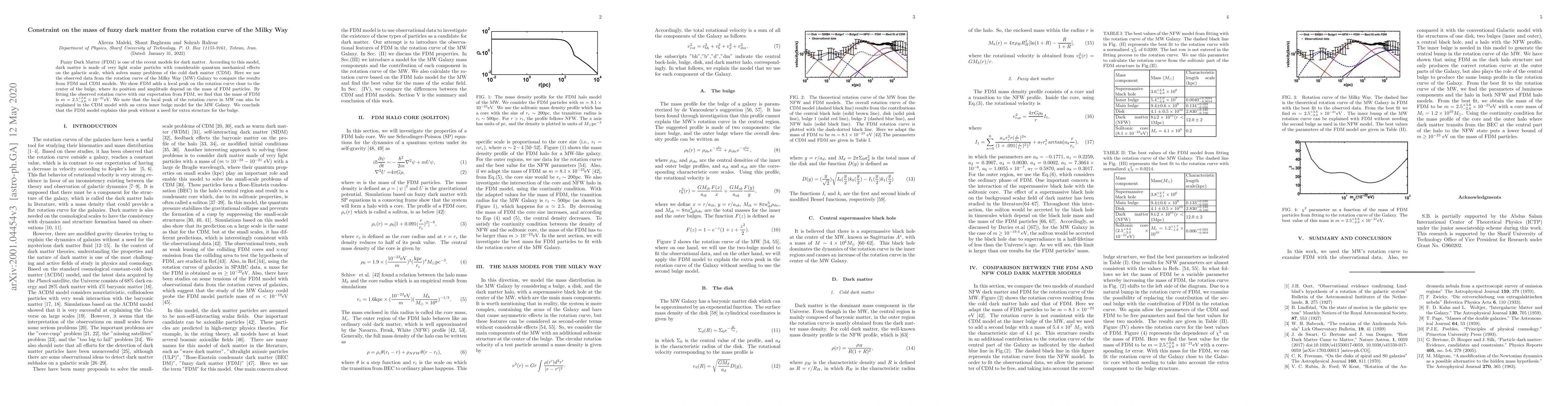 This paper constrains the mass of Fuzzy Dark Matter (FDM) using the Milky Way's rotation curve, finding $m = 2.5^{+3.6}_{-2.0} \times10^{-21}$eV. The study shows that FDM can explain the local peak in the rotation curve without requiring additional inner bulge structures, contrasting with Cold Dark Matter models.