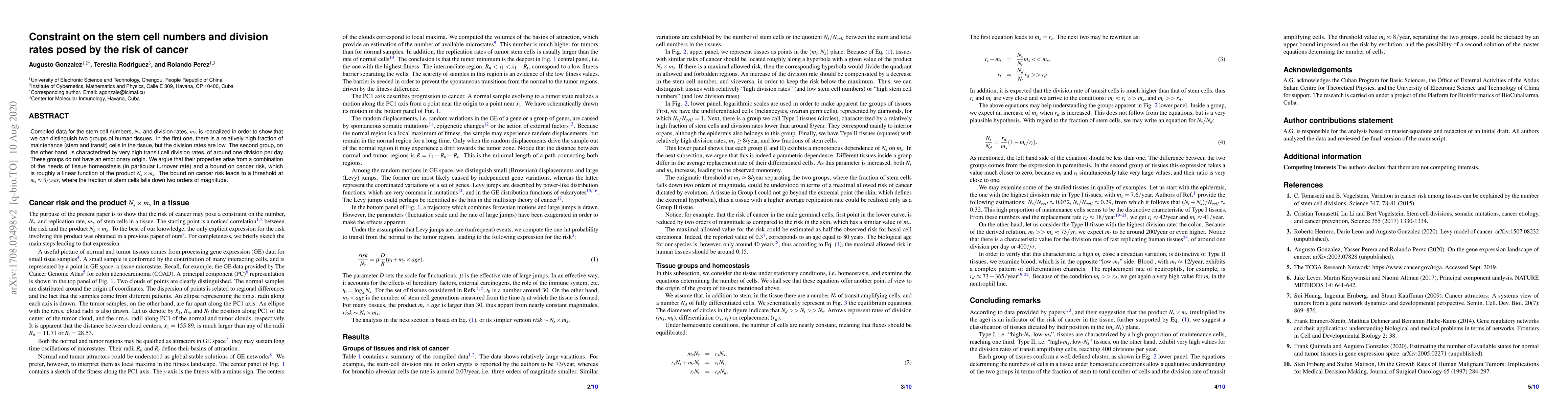 Compiled data for the stem cell numbers, Ns, and division rates, ms, is reanalized in order to show that we can distinguish two groups of human tissues. In the first one, there is a relatively high fraction of maintenance (stem and transit) cells in the tissue, but the division rates are low. The second group, on the other hand, is characterized by very high transit cell division rates, of around one division per day. These groups do not have an embrionary origin. We argue that their properties arise from a combination of the needs of tissue homeostasis (in particular turnover rate) and a bound on cancer risk, which is roughly a linear function of the product Ns ms. The bound on cancer risk leads to a threshold at ms = 8/year, where the fraction of stem cells falls down two orders of magnitude.