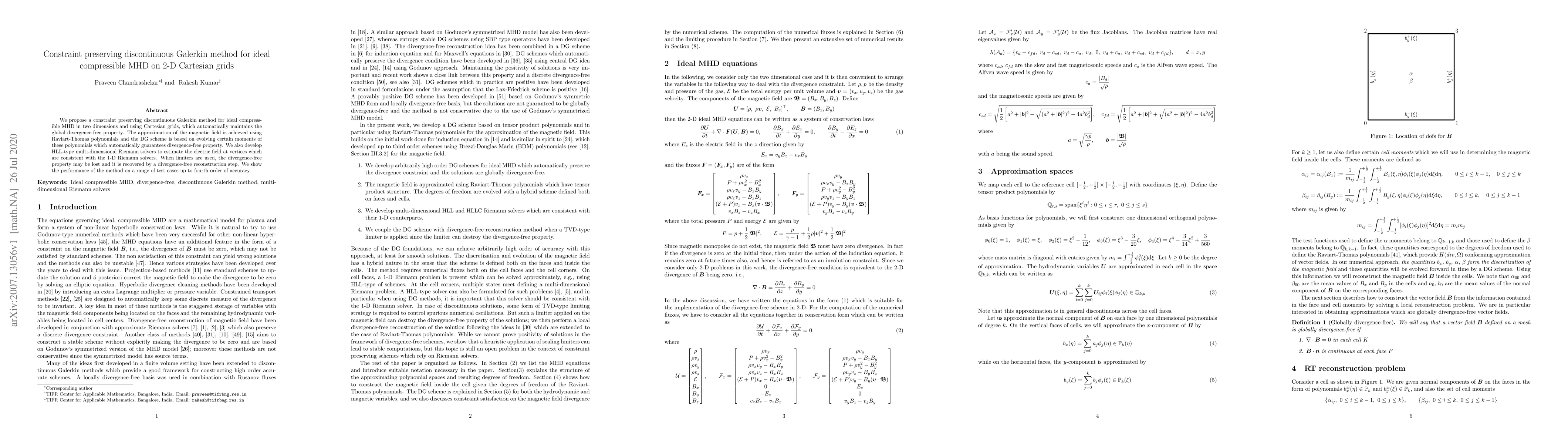 This paper introduces a constraint preserving discontinuous Galerkin method for ideal compressible magnetohydrodynamics (MHD) on 2-D Cartesian grids, ensuring the global divergence-free property of the magnetic field. The method employs Raviart-Thomas polynomials and HLL-type Riemann solvers, with a divergence-free reconstruction step to recover accuracy when limiters are used.