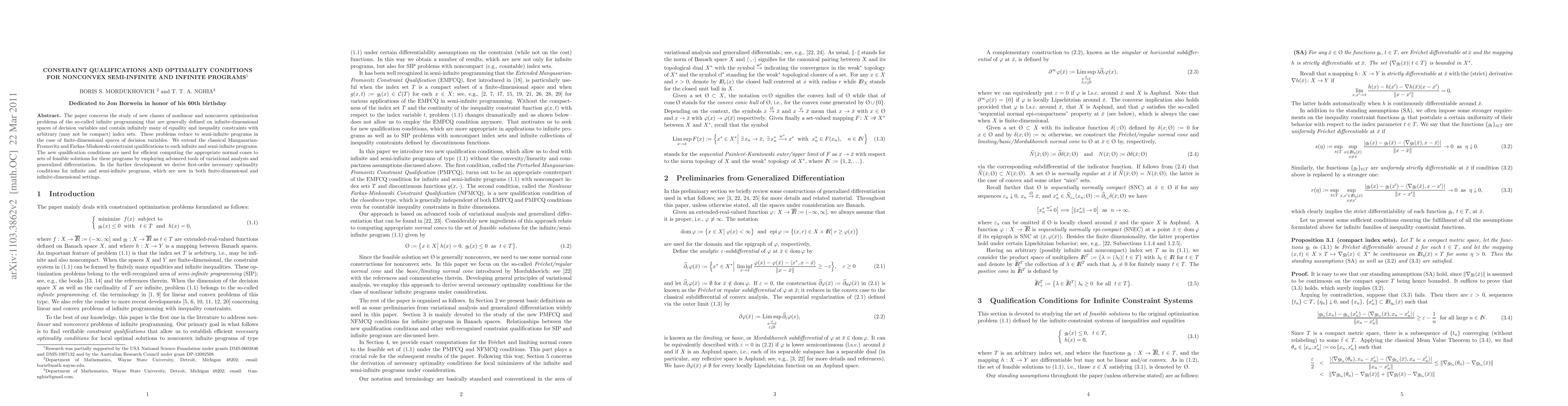 This paper extends classical constraint qualifications for nonconvex optimization problems to infinite and semi-infinite programs, employing variational analysis and generalized differentiation. It also derives new first-order necessary optimality conditions for these complex optimization problems.