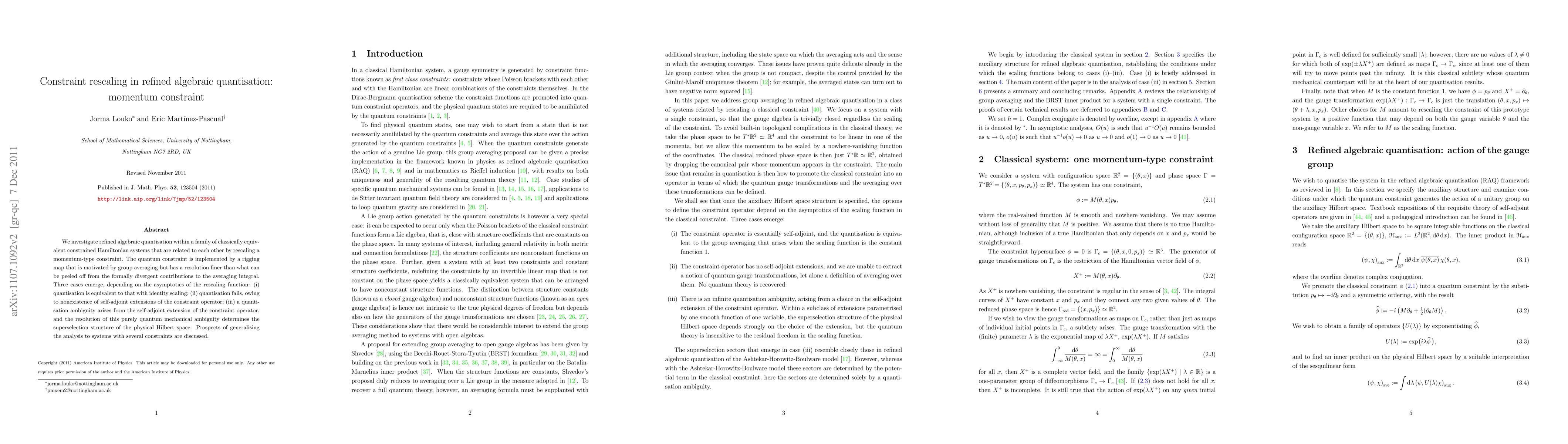 This paper explores refined algebraic quantisation for constrained Hamiltonian systems related by rescaling a momentum constraint. Three scenarios emerge based on the rescaling function's asymptotics: standard quantisation, failure due to non-existent self-adjoint extensions, and a quantum ambiguity affecting the physical Hilbert space's superselection structure.