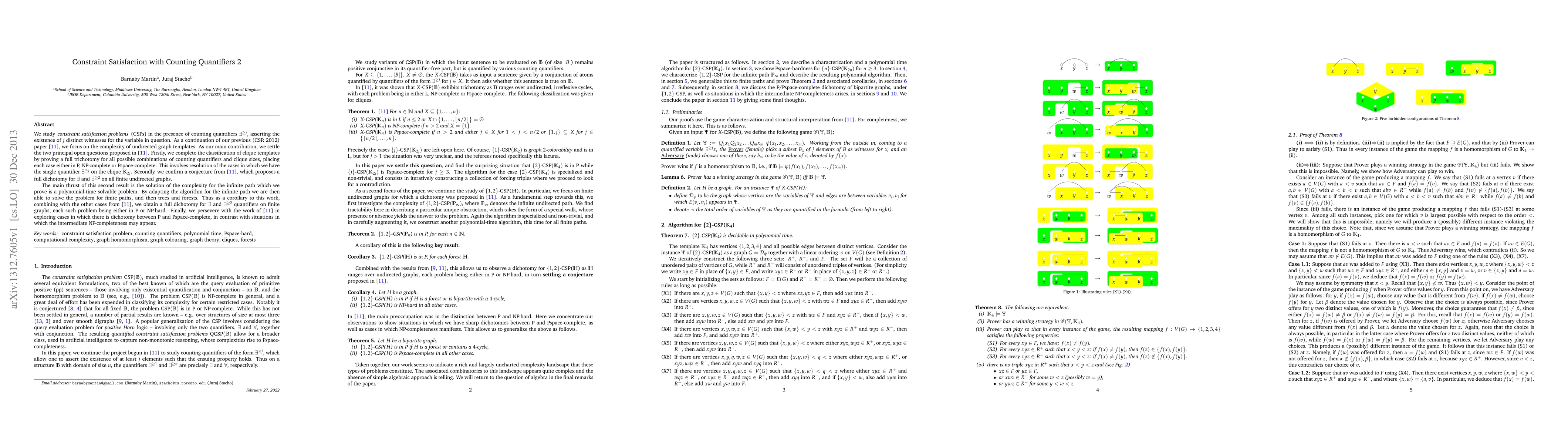 We study constraint satisfaction problems (CSPs) in the presence of counting quantifiers $\exists^{\geq j}$, asserting the existence of $j$ distinct witnesses for the variable in question. As a continuation of our previous (CSR 2012) paper, we focus on the complexity of undirected graph templates. As our main contribution, we settle the two principal open questions proposed in (CSR 2012). Firstly, we complete the classification of clique templates by proving a full trichotomy for all possible combinations of counting quantifiers and clique sizes, placing each case either in P, NP-complete or Pspace-complete. This involves resolution of the cases in which we have the single quantifier $\exists^{\geq j}$ on the clique $K_{2j}$. Secondly, we confirm a conjecture from (CSR 2012), which proposes a full dichotomy for $\exists$ and $\exists^{\geq 2}$ on all finite undirected graphs. The main thrust of this second result is the solution of the complexity for the infinite path which we prove is a polynomial-time solvable problem. By adapting the algorithm for the infinite path we are then able to solve the problem for finite paths, and then trees and forests. Thus as a corollary to this work, combining with the other cases from (CSR 2012), we obtain a full dichotomy for $\exists$ and $\exists^{\geq 2}$ quantifiers on finite graphs, each such problem being either in P or NP-hard. Finally, we persevere with the work of (CSR 2012) in exploring cases in which there is dichotomy between P and Pspace-complete, in contrast with situations in which the intermediate NP-completeness may appear.