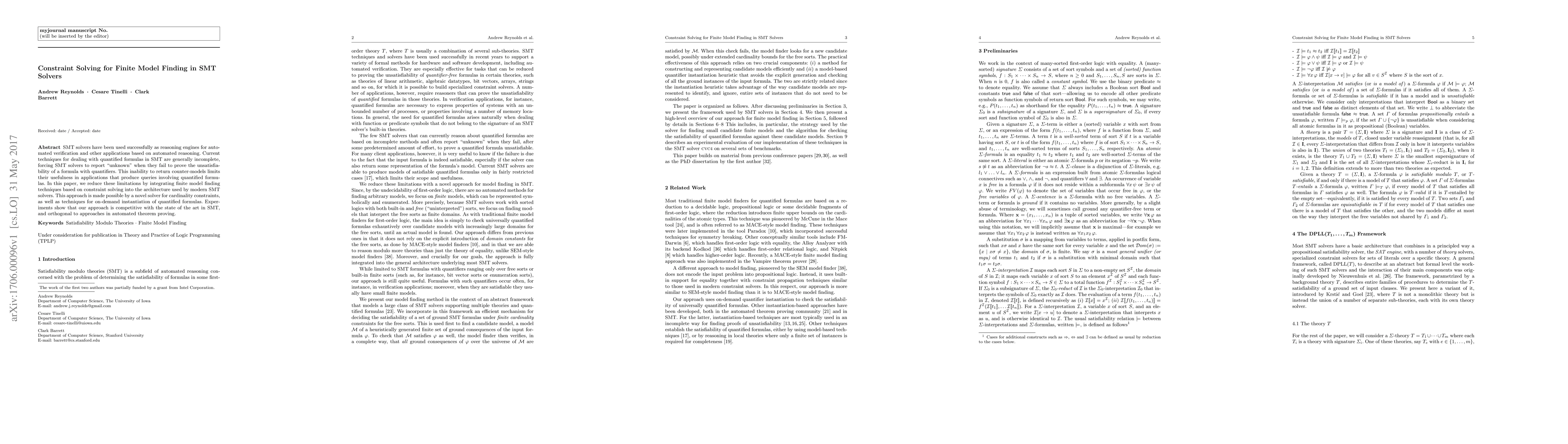 This paper proposes integrating finite model finding techniques using constraint solving into SMT solvers to handle quantified formulas more effectively, introducing a novel cardinality constraint solver and on-demand instantiation methods, which enhances the solver's ability to generate counter-models and improve its utility in verification applications. Experimental results demonstrate its competitiveness with current SMT solvers.