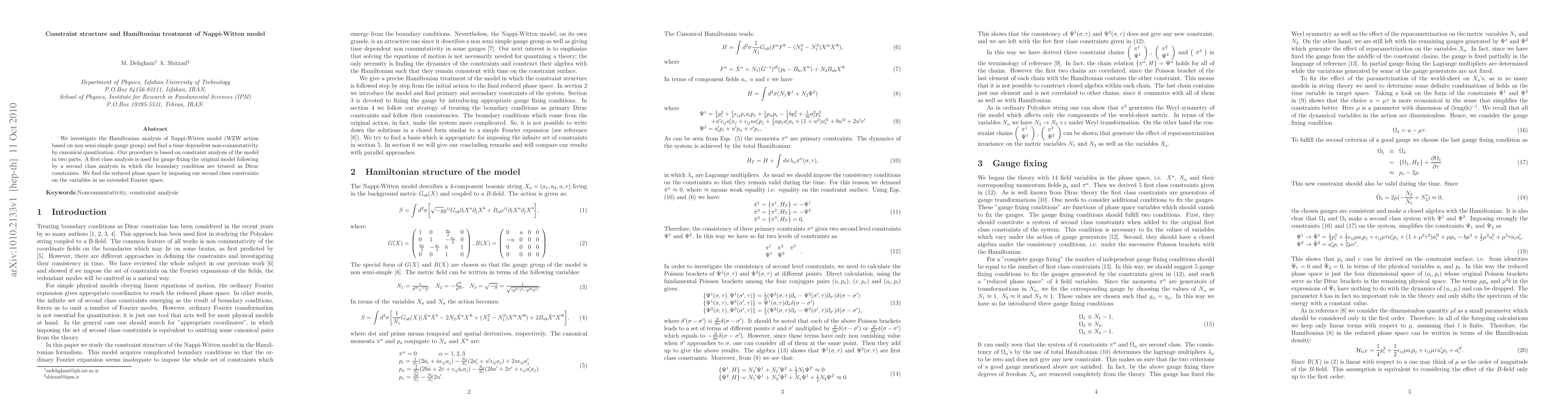We investigate the Hamiltonian analysis of Nappi-Witten model (WZW action based on non semi simple gauge group) and find a time dependent non-commutativity by canonical quantization. Our procedure is based on constraint analysis of the model in two parts. A first class analysis is used for gauge fixing the original model following by a second class analysis in which the boundary condition are treated as Dirac constraints. We find the reduced phase space by imposing our second class constraints on the variables in an extended Fourier space.